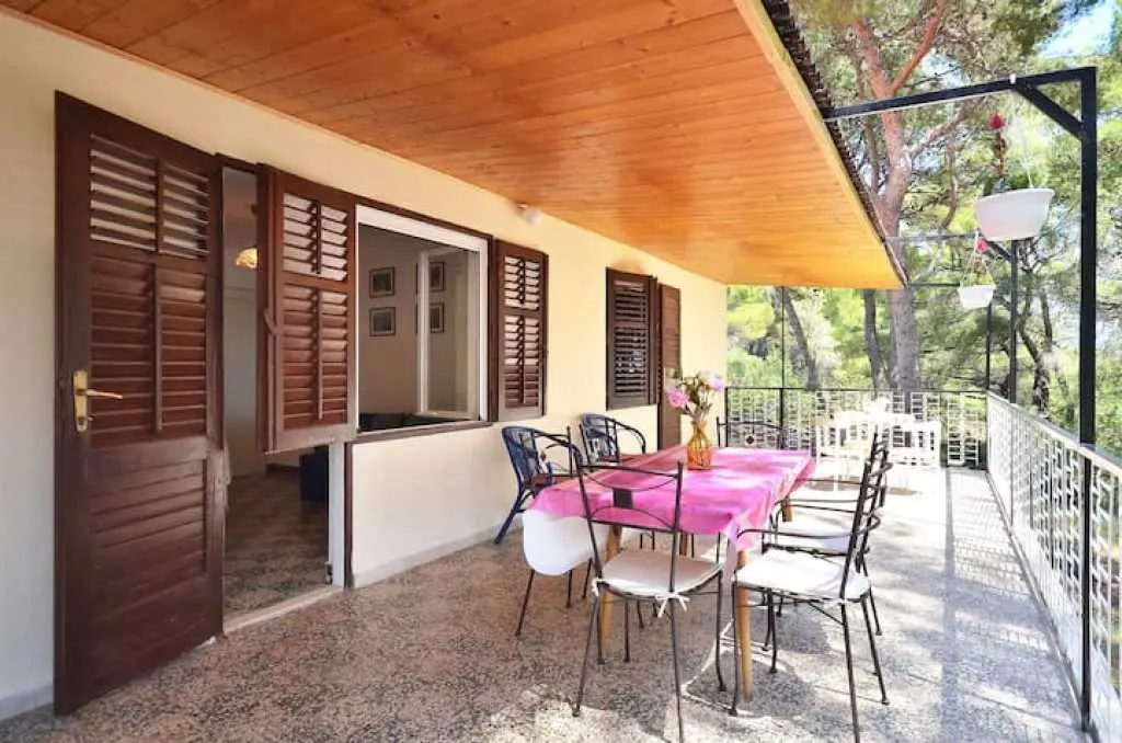 Haus Margita ideale Wahl für alle, die Entspannung in einer schönen, natürlichen mediterranen Ambiente suchen und das kristallklare Wasser genießen. Umgeben von unberührten Pinienwald und einheimischen Blumen geben Ihnen Frieden, Ruhe und Entspannung von der Hektik. Stadtzentrum mit Restaurants und einem Supermarkt liegt nur 100 m entfernt, und das Meer und der Strand sind 200 m. Das Haus ist die Kombination dekoriert modernen und antiken Möbeln und besteht aus einem Schlafzimmer mit einem Doppelbett, ein Schlafzimmer mit einem Einzel- und einem Doppelbett, Bad und WC. Die Küche, Esszimmer und Wohnzimmer haben Zugang zu einer großen Terrasse (3x9 m), wo man essen, sondern auch die Sonne und natürlichen Schatten zu genießen. Das Sofa im Wohnzimmer kann bei Bedarf in ein Doppelbett zu lösen. Sumartin ist ein kleines, malerisches Fischerdorf an der südöstlichen Spitze der Insel Brac verbunden direkte, tägliche Fähre von Makarska. Buslinien verbinden ihn an anderen Orten auf der Insel und ist somit nach Bol und Zlatni rat nur 20 km. Nur hat Sumartin vier Strände mit Duschen und einem gemieteten Boot zu einem der nahe gelegenen Buchten gehen
