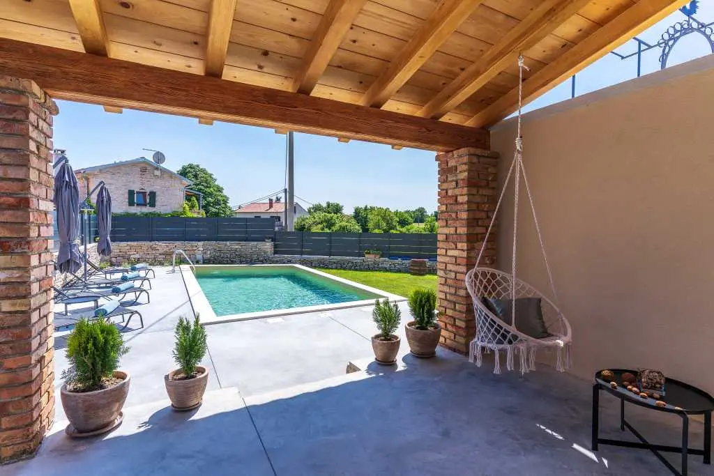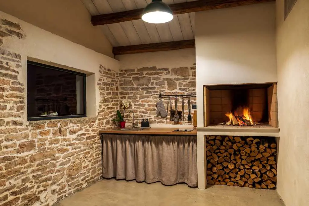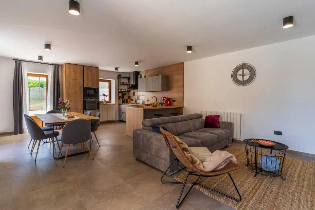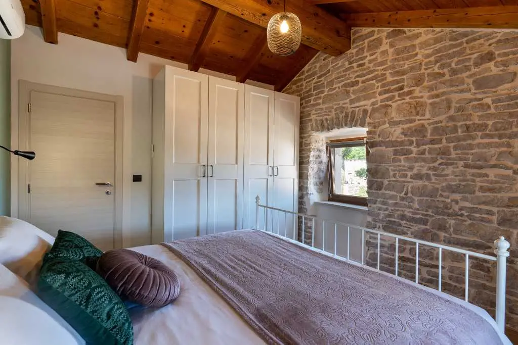 Verbringen Sie Ihren Urlaub in einem Haus, das eine Geschichte hat! Villa Nr. 8 ist ein neu renoviertes, 100 Jahre altes Steinhaus in Bazgalji, einem kleinen Dorf in der malerischen Landschaft des ländlichen Istriens. Die Villa ist mit Steinmauerelementen und Holzbalken dekoriert und verfügt über ein Wohnzimmer mit Kamin und TV, eine voll ausgestattete Küche mit Essbereich und kostenloses WLAN. Es verfügt über 4 Schlafzimmer und 3 Badezimmer mit Dusche. Verbringen Sie die heißen Sommertage im Freien und genießen Sie den privaten Swimmingpool, einen Garten mit Sonnendecks, einen Loungebereich und eine Außenküche. Das Parken vor Ort ist kostenlos und das nächste Lebensmittelgeschäft ist 6 km entfernt. Die Villa hat eine perfekte Ausgangsposition, um die Halbinsel Istrien zu erkunden. Sie sind 30 Minuten vom Meer, den Bergen und den umliegenden Städten entfernt. Der Gastgeber kann Empfehlungen zu Ausflügen und Radwegen in der Umgebung geben.