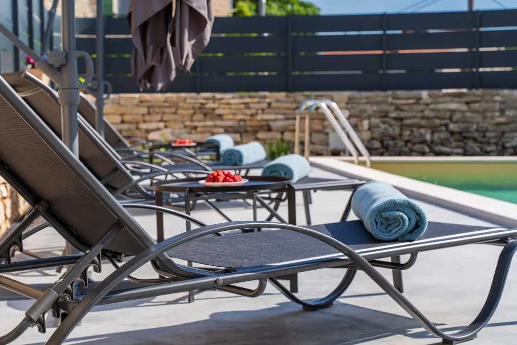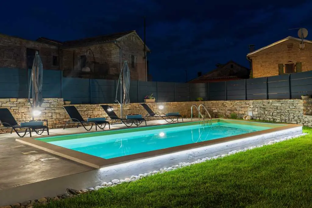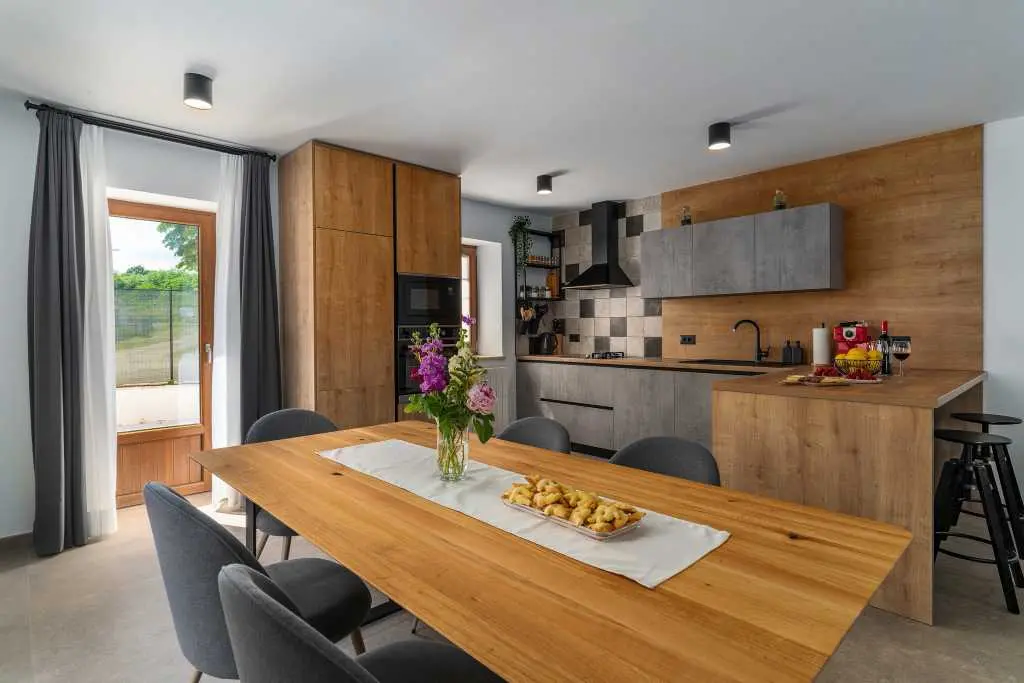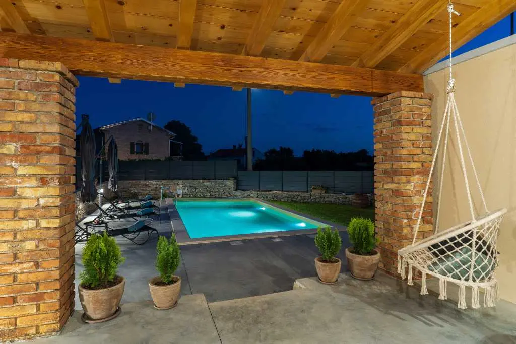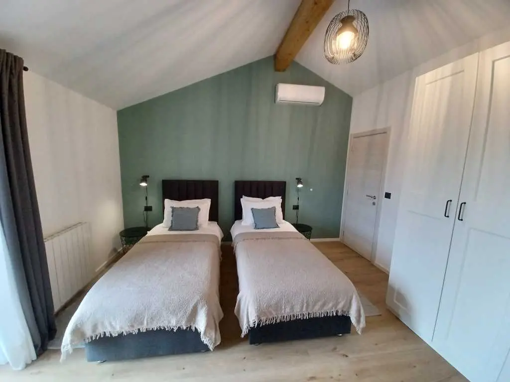 Verbringen Sie Ihren Urlaub in einem Haus, das eine Geschichte hat! Villa Nr. 8 ist ein neu renoviertes, 100 Jahre altes Steinhaus in Bazgalji, einem kleinen Dorf in der malerischen Landschaft des ländlichen Istriens. Die Villa ist mit Steinmauerelementen und Holzbalken dekoriert und verfügt über ein Wohnzimmer mit Kamin und TV, eine voll ausgestattete Küche mit Essbereich und kostenloses WLAN. Es verfügt über 4 Schlafzimmer und 3 Badezimmer mit Dusche. Verbringen Sie die heißen Sommertage im Freien und genießen Sie den privaten Swimmingpool, einen Garten mit Sonnendecks, einen Loungebereich und eine Außenküche. Das Parken vor Ort ist kostenlos und das nächste Lebensmittelgeschäft ist 6 km entfernt. Die Villa hat eine perfekte Ausgangsposition, um die Halbinsel Istrien zu erkunden. Sie sind 30 Minuten vom Meer, den Bergen und den umliegenden Städten entfernt. Der Gastgeber kann Empfehlungen zu Ausflügen und Radwegen in der Umgebung geben.