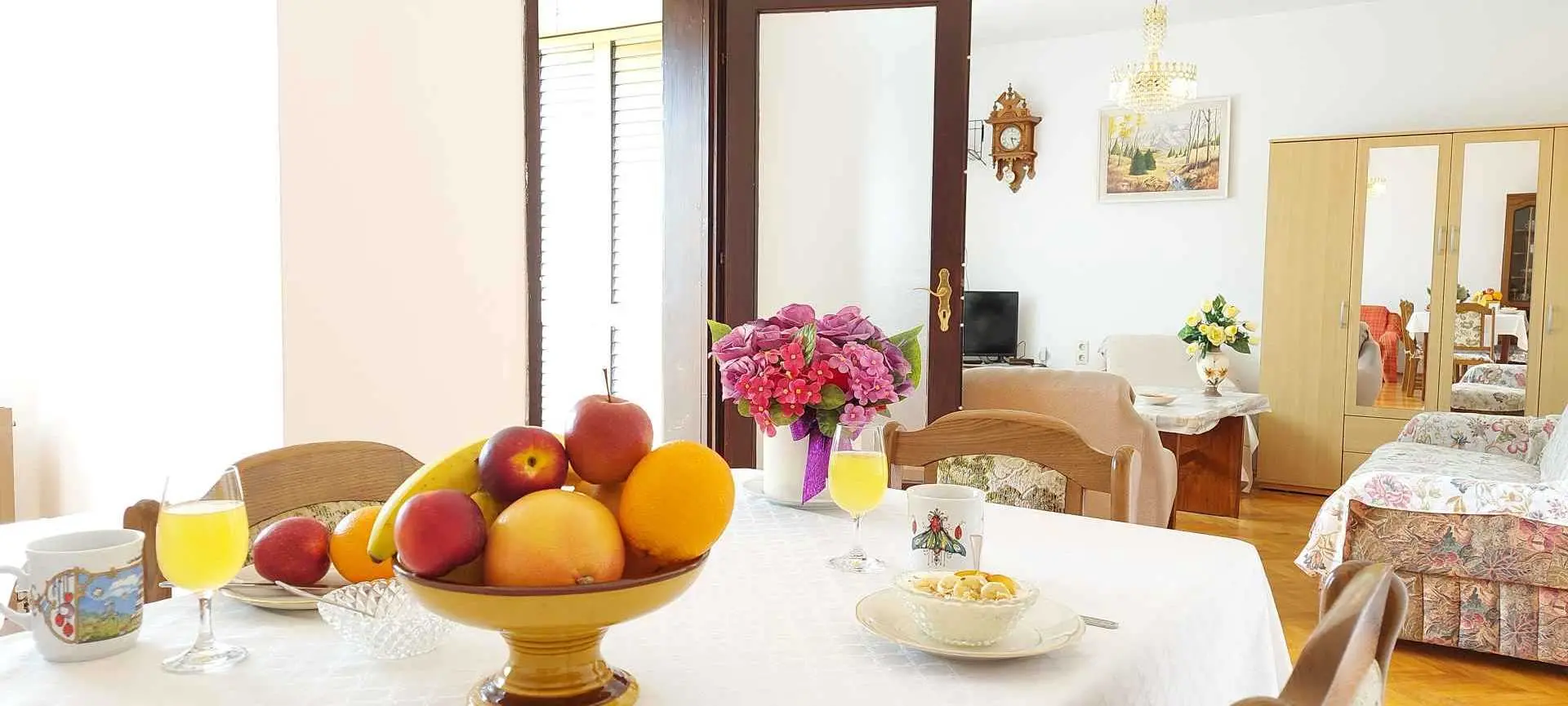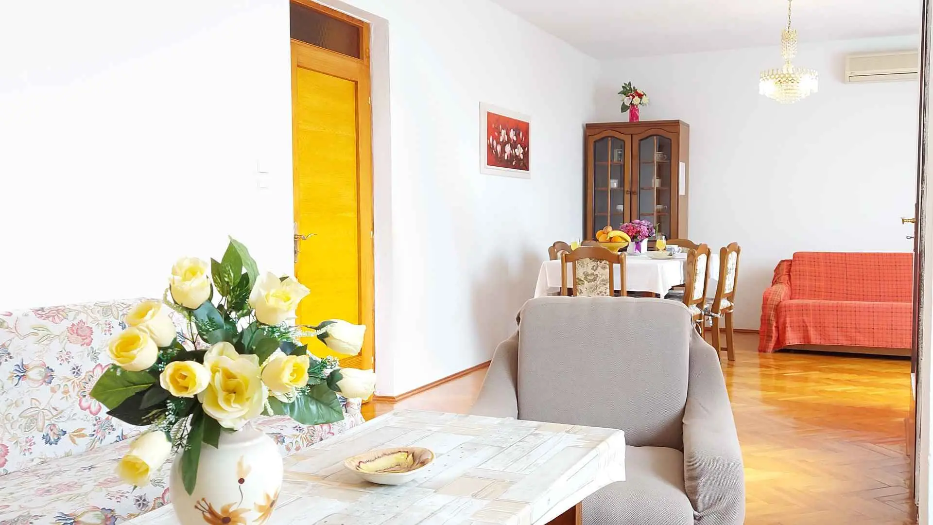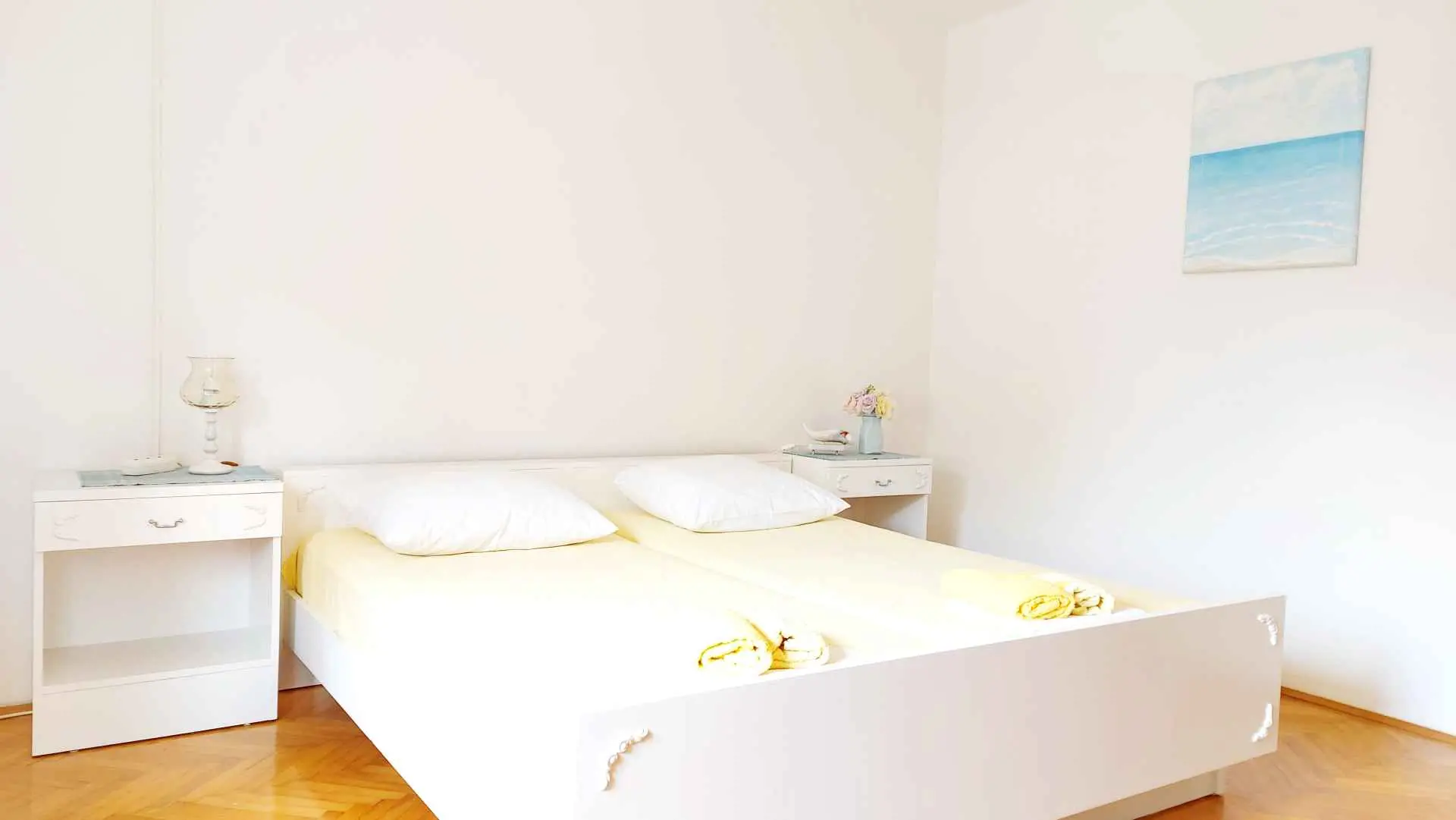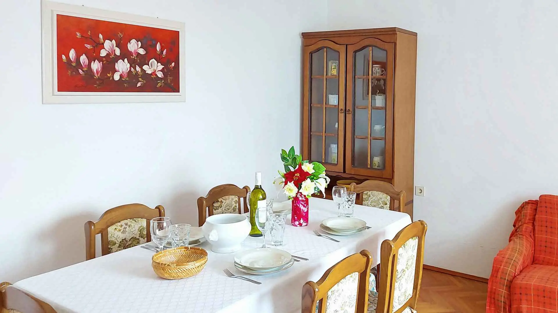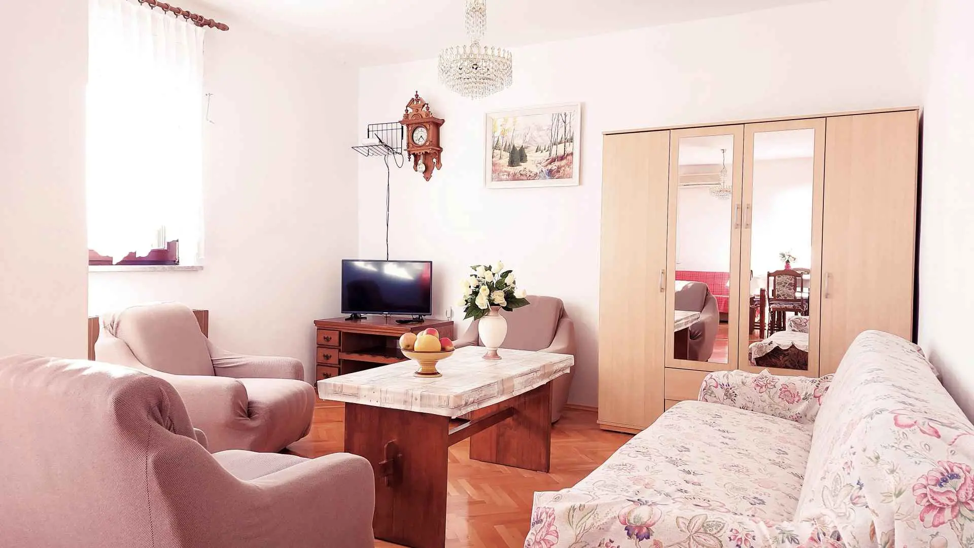 Holiday House Jure Senj für 8 Personen befindet sich in Senj, 400 m (10 Gehminuten) vom Strand Škver entfernt. Es besteht aus 2 Schlafzimmern, einem Badezimmer und Küche im Erdgeschoss und 1 Schlafzimmer mit Klimaanlage, einem Badezimmer, einer Küche, einem geräumigen Esszimmer und einem Wohnzimmer mit Balkon, Klimaanlage und 2 große Liegesofas im ersten Stock. Es verfügt über Satellitenfernsehen, WLAN-Internet. Das Haus ist von Grün umgeben. Auf der Terrasse vor dem Haus können Sie grillen. Rauchen ist im Haus verboten, aber auf der Terrasse vor dem Haus erlaubt. Tiere sind verboten. Strand 400 m, Zentrum 350 m, Supermarkt 100 m, Restaurants 300 m, 2 Parkplätze, Ambulanz 300 m, Apotheke 300 m, Post 300 m, Bank 350 m. Im Juli und August buchen wir NUR von Samstag bis Samstag.