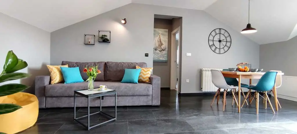 Die neu renovierten Apartments In The Zone befinden sich in einer kleinen, ruhigen Landschaft Kukuljanovo, zwischen der Stadt Rijeka, dem größten kroatischen Hafen und Verwaltungszentrum der Gespanschaft Primorsko-Goranska, und der Stadt Bakar - einer der ältesten Städte der Welt Adria. Aufgrund ihrer besonderen Lage sind die Appartements ideal für alle Formen der Ruhe, Erholung und des Genusses. In nur wenigen Autominuten erreichen Sie den ersten Strand in Kostrena; Auch in der Nähe gibt es die Stadt Crikvenica, die Riviera von Opatija und die Insel Krk. Wenn Sie eine der beiden kroatischen Halbinseln besuchen möchten, erreichen Sie das schöne Istrien in 45 Minuten. Für diejenigen, die nach Abenteuer und Bergluft suchen, ist Platak - das einzige Skigebiet mit Meerblick - nur 30 km entfernt, während die Rennstrecke Grobnik 10 km entfernt ist. Wenn Sie sich für Kulturtourismus interessieren, sind Sie an der richtigen Stelle, da die dynamische Geschichte von Rijeka mit zahlreichen kulturellen und historischen Inhalten geschrieben ist. Apartments In The Zone bieten zwei neu renovierte Apartments, die mit allem ausgestattet sind, was Sie für einen angenehmen und erholsamen Aufenthalt benötigen. Jede Wohnung besteht aus einer geräumigen Küche, einem Wohnzimmer, zwei Schlafzimmern, einem Badezimmer und einer Toilette. Beide Wohnungen verfügen über private Terrassen mit Blick in die Natur. Wenn Sie ein hervorragend ausgestattetes und dekoriertes Apartment in der Umarmung des Meeres und der Berge genießen möchten, kommen Sie und seien Sie "in the zone".