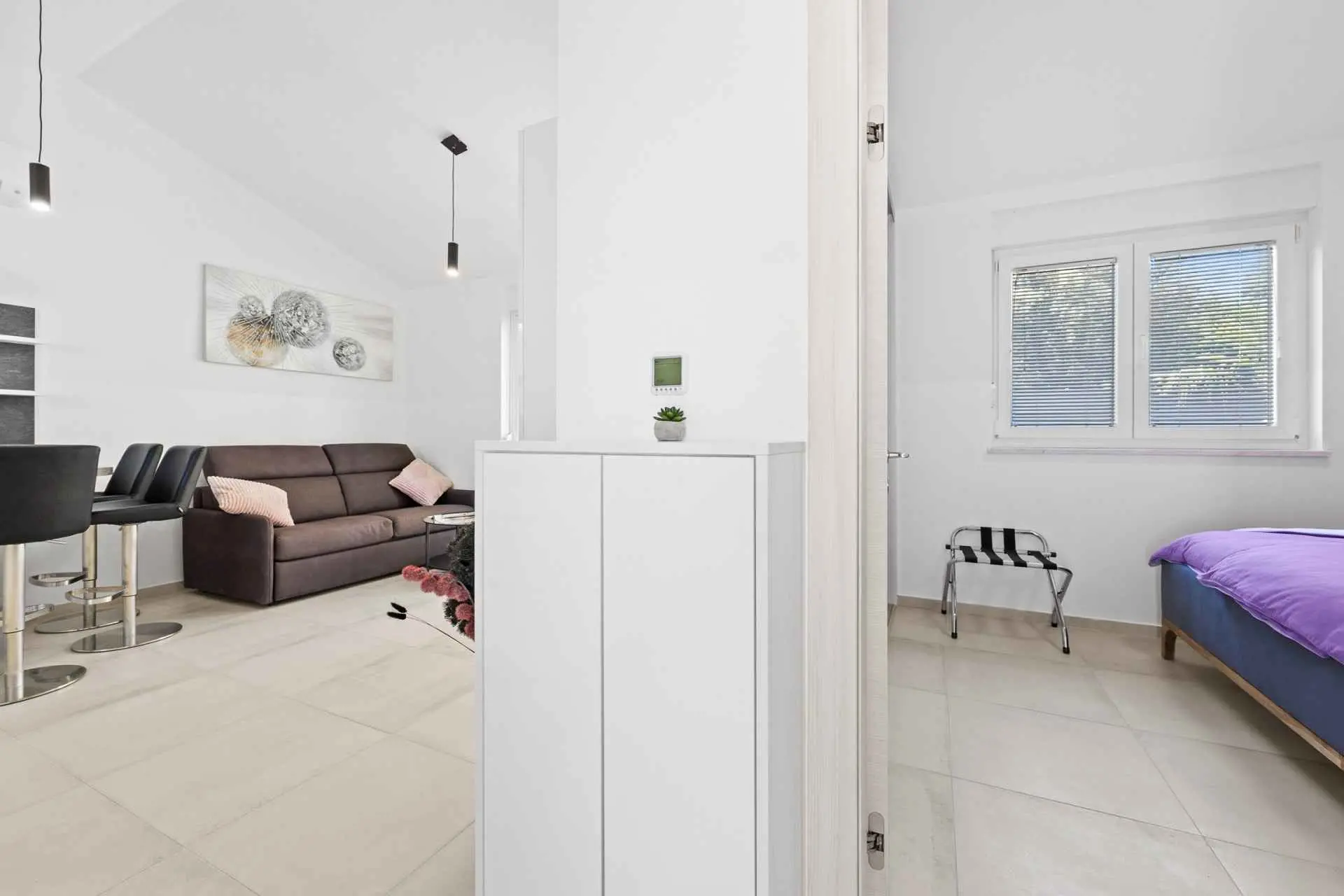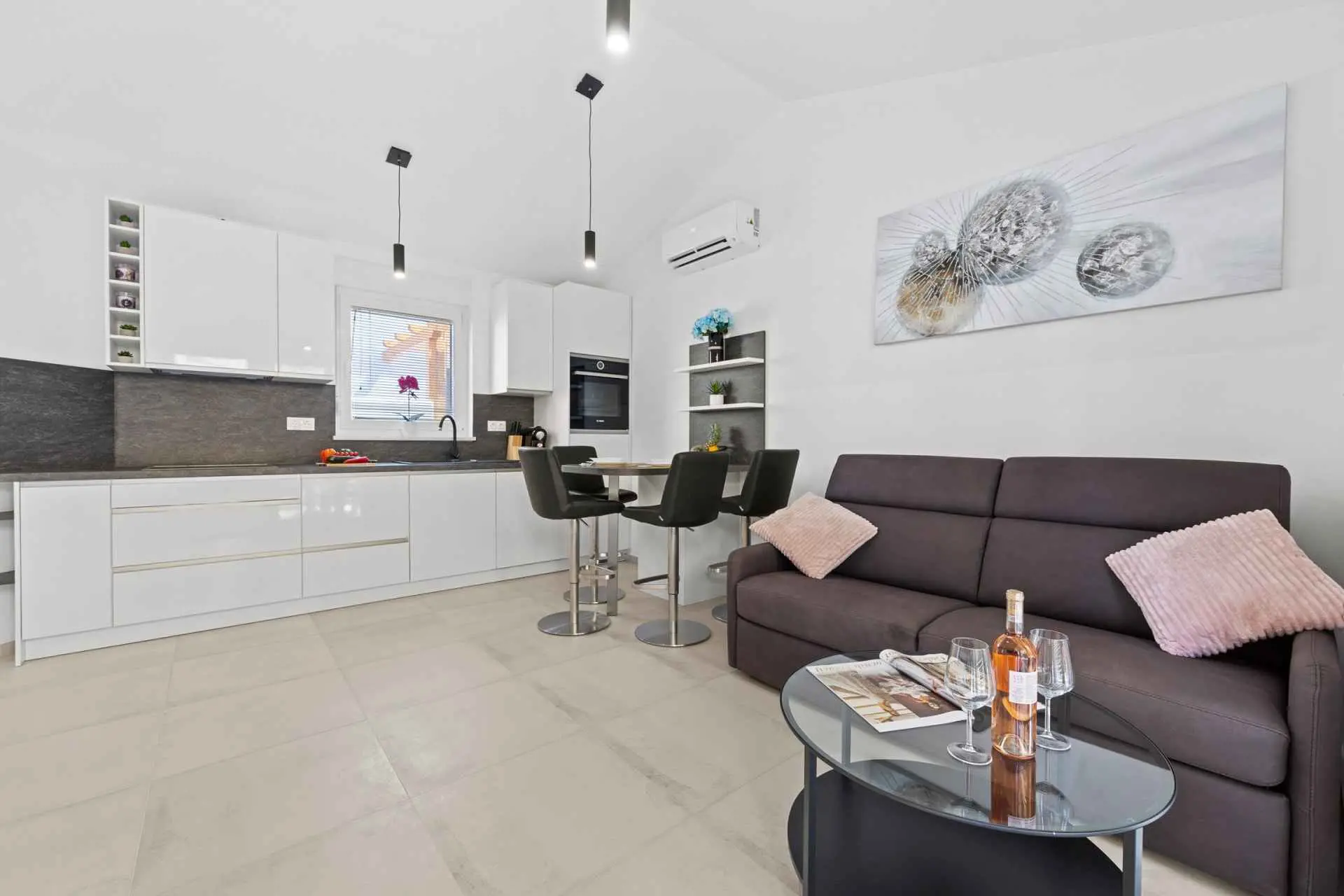 Das Barbariga Beach Apartment ist ein neu eingerichtetes und modernes Apartment, das nur 190 m vom nächsten Kieselstrand entfernt liegt. Es besteht aus einer schönen Terrasse mit Blick auf den Pinienwald, einem Wohnzimmer/einer Küche, einem Schlafzimmer und einem Badezimmer. Zwei Sonnenliegen auf der Terrasse bieten die perfekte Gelegenheit, sich in der Privatsphäre Ihres Apartments zu bräunen. Die Küche ist voll ausgestattet und den Gästen steht eine Waschmaschine zur Verfügung, sodass es sich perfekt für längere Urlaube eignet. Haustiere sind nach vorheriger Ankündigung und gegen Aufpreis erlaubt.
