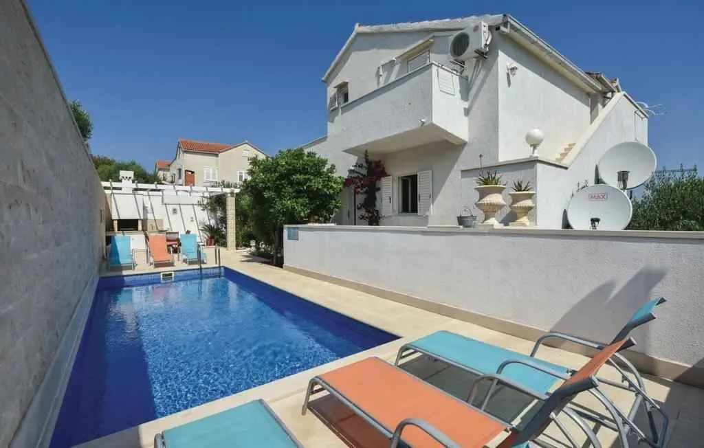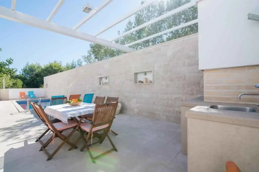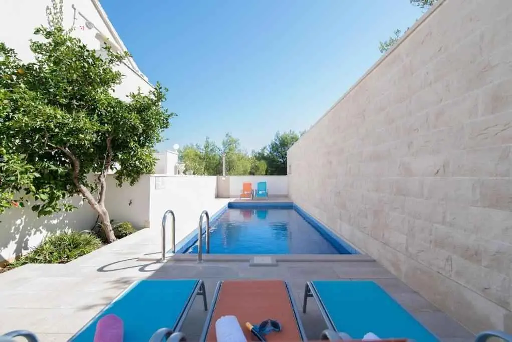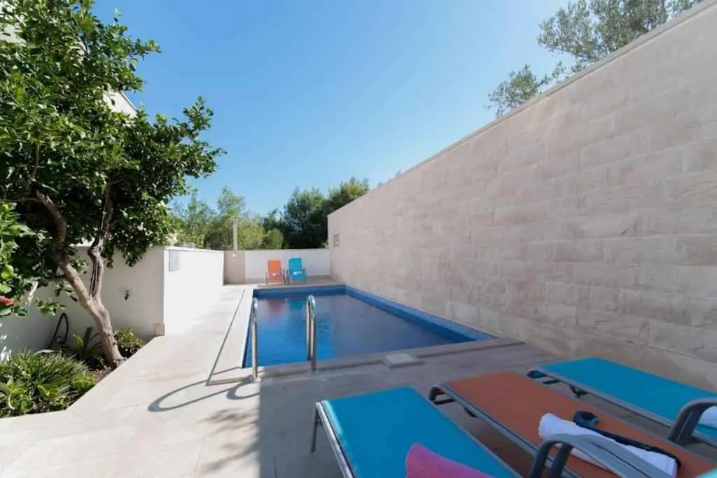 Dies ist eine Wohnung von 150 m2, mit 3 Schlafzimmern, 4 Bädern, Whirlpool, Waschküche, großem Wohnzimmer und Küche mit großer Terrasse mit Meerblick. Sie können sich in unserem Sonnenplatz und mediterranen Garten entspannen und auch unser Schwimmbad nutzen. Zum Strand benötigen Sie 5 Gehminuten