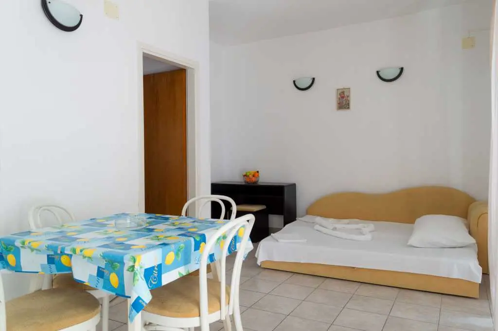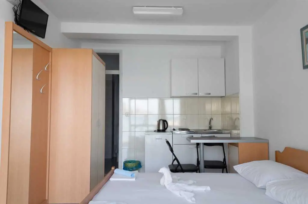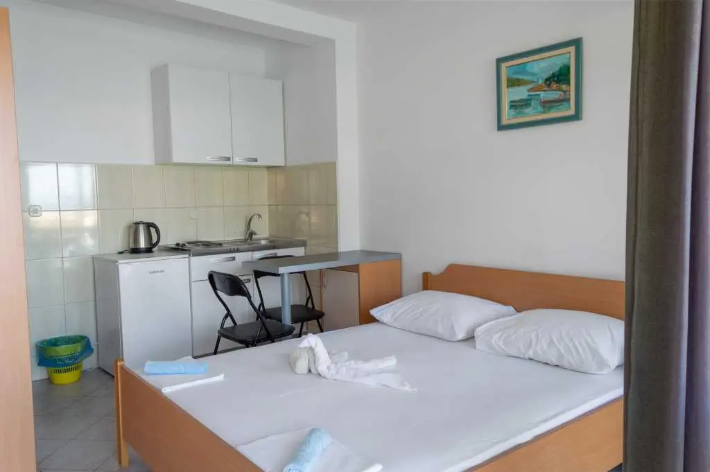 Willkommen in den Apartments Ivica! Die Apartments befinden sich direkt am Strand und vermitteln eine sommerliche Atmosphäre. Es gibt 3 Apartments, zwei davon sind Studio-Apartments. Im Erdgeschoss befindet sich ein Studio-Apartment mit Blick auf den Strand und das Meer. Es besteht aus einem Doppelbett, Bad, Küche und Terrasse. Im ersten Stock befinden sich die restlichen zwei Wohnungen. Einer von ihnen hat einen wunderschönen Meerblick, den Sie jeden Morgen und Abend genießen können. Es hat auch ein Doppelbett, Bad und Küche. Die zweite Wohnung ist mit einem Doppelbett, einem Schlafsofa, einem Badezimmer und einer Küche ausgestattet.
