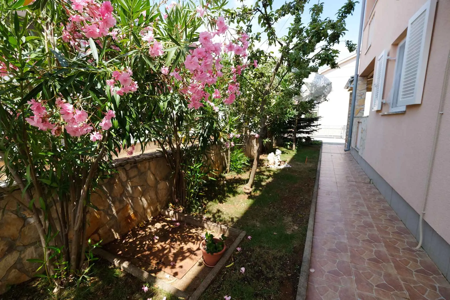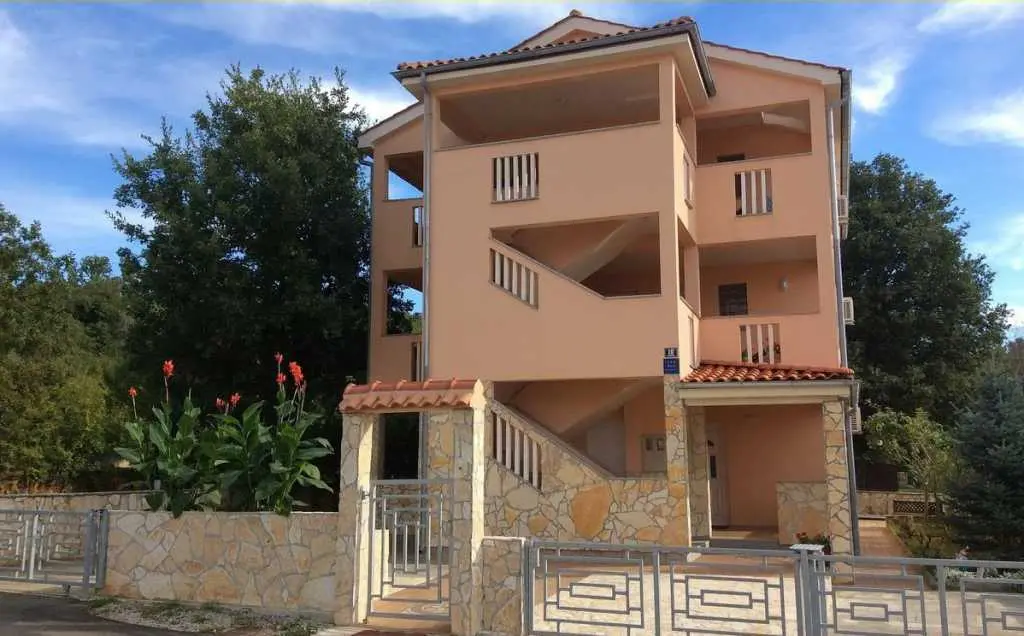 Kroatien Krk Villa Coral Klimno. Kieselstrand ist 150 m entfernt. Geschäft, Café, Bäckerei 120 m. Apartment für 4 Personen. App. 2 + 2 im Erdgeschoss, ca. 45 m2. Schlafzimmer mit 180 x 200 Bett. Wohnzimmer (Sofa für zwei Erwachsene) zusammen mit Küche. Klimaanlage. Mikrowelle. WLAN. Terrasse mit Tisch und Stühlen. Dusche/WC. Parken im Garten. Unsere Gäste können den Grill im Garten nutzen. Apartment 70 m2 für 6 Personen 4 + 2, wunderschöner Meerblick und Wald mit einer großen Terrasse von 29 m2. Zwei große Schlafzimmer mit Doppelbetten (180 x 200 cm), Wohnzimmer mit offener Küche. Im Wohnzimmer gibt es ein Sofa, das in ein Doppelbett umgewandelt werden kann. Geschirrspüler, Klimaanlage. Badezimmer mit Dusche. Waschmaschine. Nespresso-Kaffeemaschine, Mikrowelle. Alle unsere Gäste haben einen Parkplatz und können den Grill im Garten nutzen