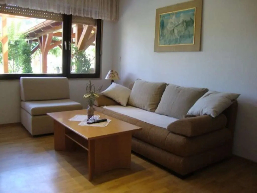 Apartment mit zwei Schlafzimmern, Küche und Wohnzimmer. Die Möglichkeit, eine überdachte Terrasse und einen großen Garten mit. In Strandnähe LJUBAC.