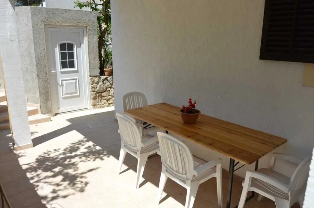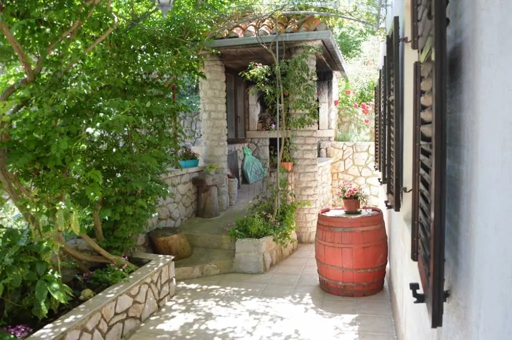Die Apartments befinden sich in einem Einfamilienhaus in Zagazinjine Viertel in Mali Lošinj in einer ruhigen Gegend Das Haus verfügt über 3 Wohneinheiten, im Erdgeschoss APP Studio für zwei Personen, Im ersten Stock befinden sich zwei Wohnungen mit separaten Eingängen APP 1 und APP2. Jede Wohnung hat 4 Betten, für 3 bis 4 Personen mit 2 Zimmern. APP 1 von 50 m2 mit einer Terrasse von 25 m2 und APP 2 von 60 m2 mit einer Terrasse von 20 m2. Von der Terrasse hat man einen schönen Blick auf das Meer (Strand Bojcic) der Inseln und den Berg Velebit. In nur 5 Gehminuten erreichen Sie den nächsten Strand Bojcic (Kies und Fels) mit natürlichem Schatten Kiefernwälder. Apartments eignen sich für Paare und Familien mit Kinder. Sie haben zwei Doppelzimmer, Bad mit Dusche, Flur, Küche mit Wohnzimmer mit Couch. APP Studio für zwei Personen hat 30 m2 und eine überdachte Terrasse von 10 m2 das ermöglicht einen angenehmen urlaub. Für alle Gäste gibt es einen Parkplatz vor der Wohnung. Haustiere sind nur in APP Studio gegen Aufpreis erlaubt