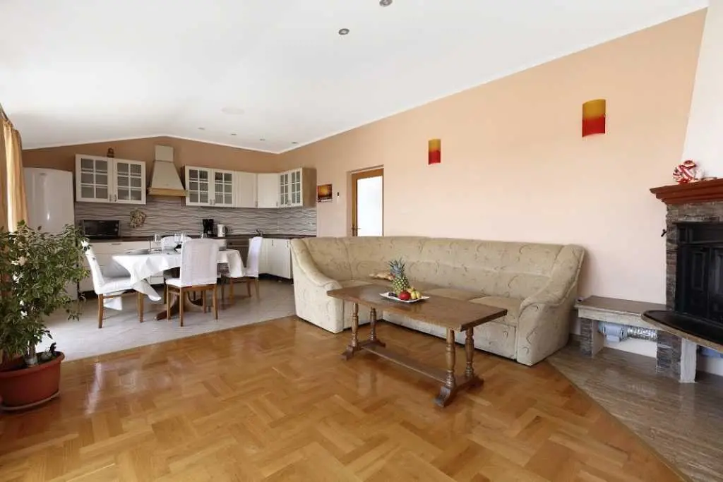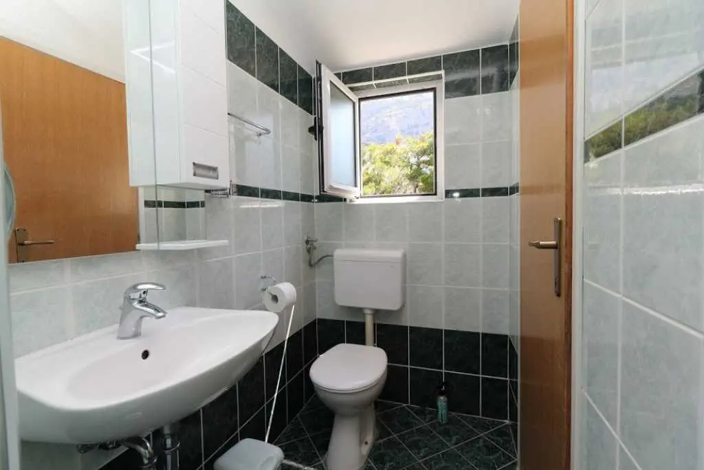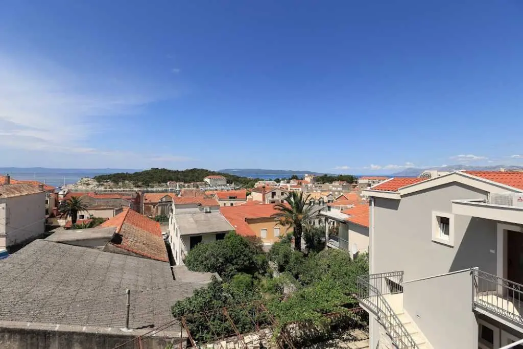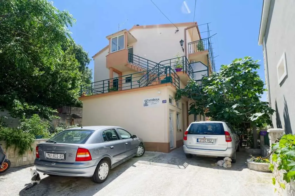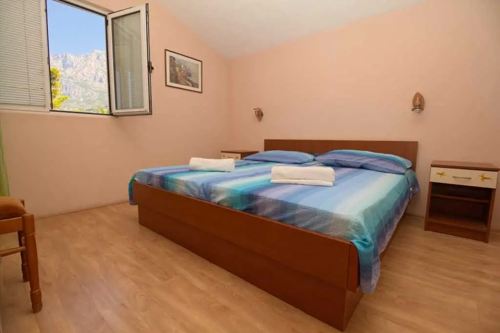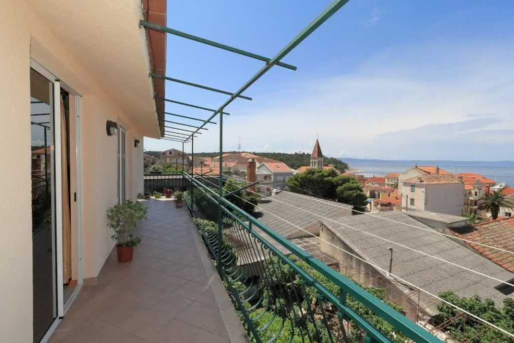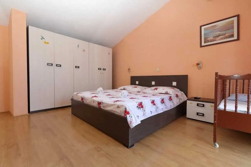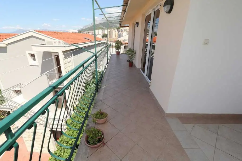 Große geräumige Wohnung in einer ruhigen Straße im Zentrum von Makarska. Die Wohnung nimmt die gesamte obere Etage eines Privathauses ein. besteht aus zwei Schlafzimmern mit eigenen Badezimmern, einem Wohnzimmer mit ausgestatteter Küche, einer Veranda mit Sommerküche und einer Terrasse mit herrlichem Blick auf das Meer und die Stadt. Sie können den Grill im Hof benutzen. Zum Strand zu Fuß 7-10 Minuten, zum Meer 3 Minuten, zum Markt, Geschäften, Hauptplatz 2 Minuten.
