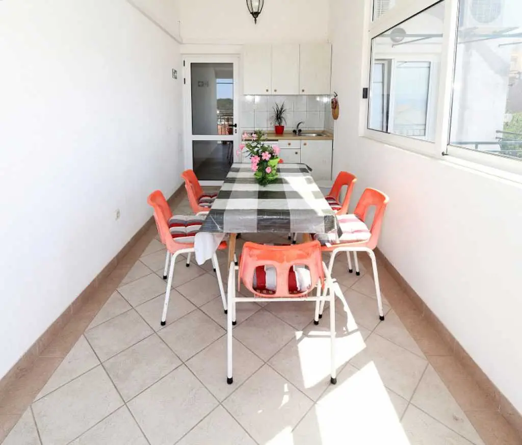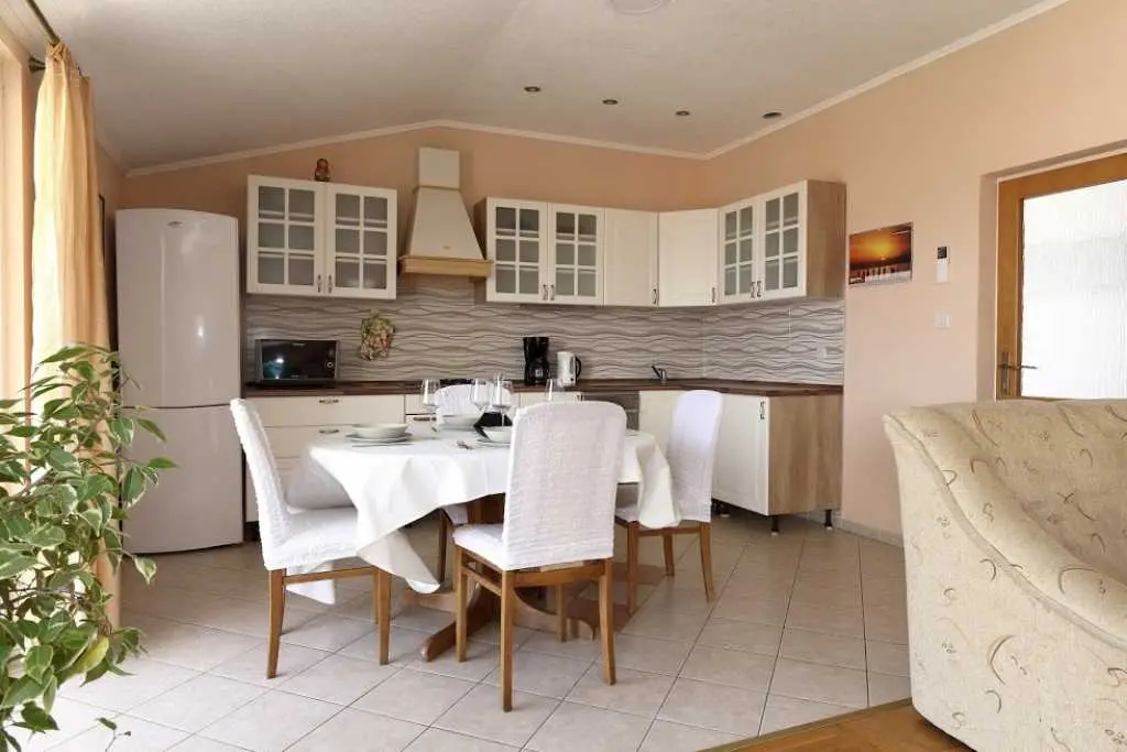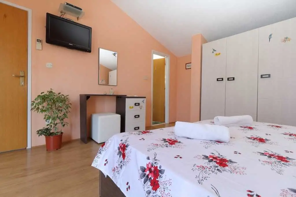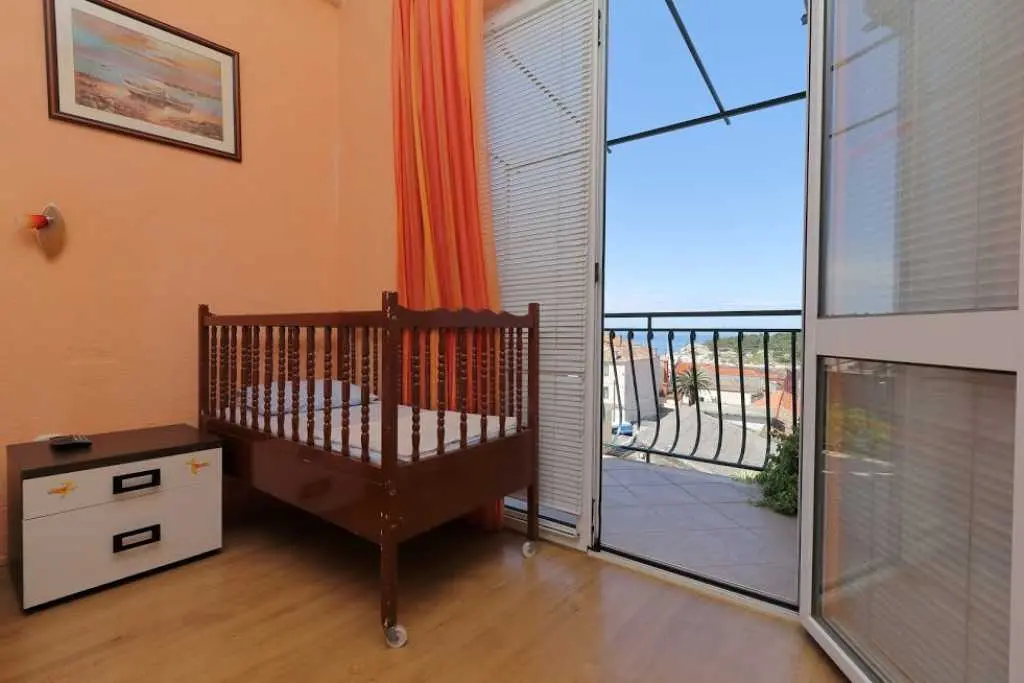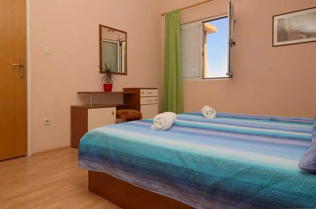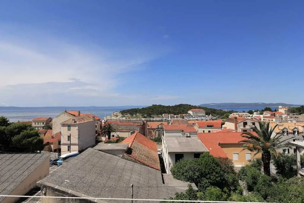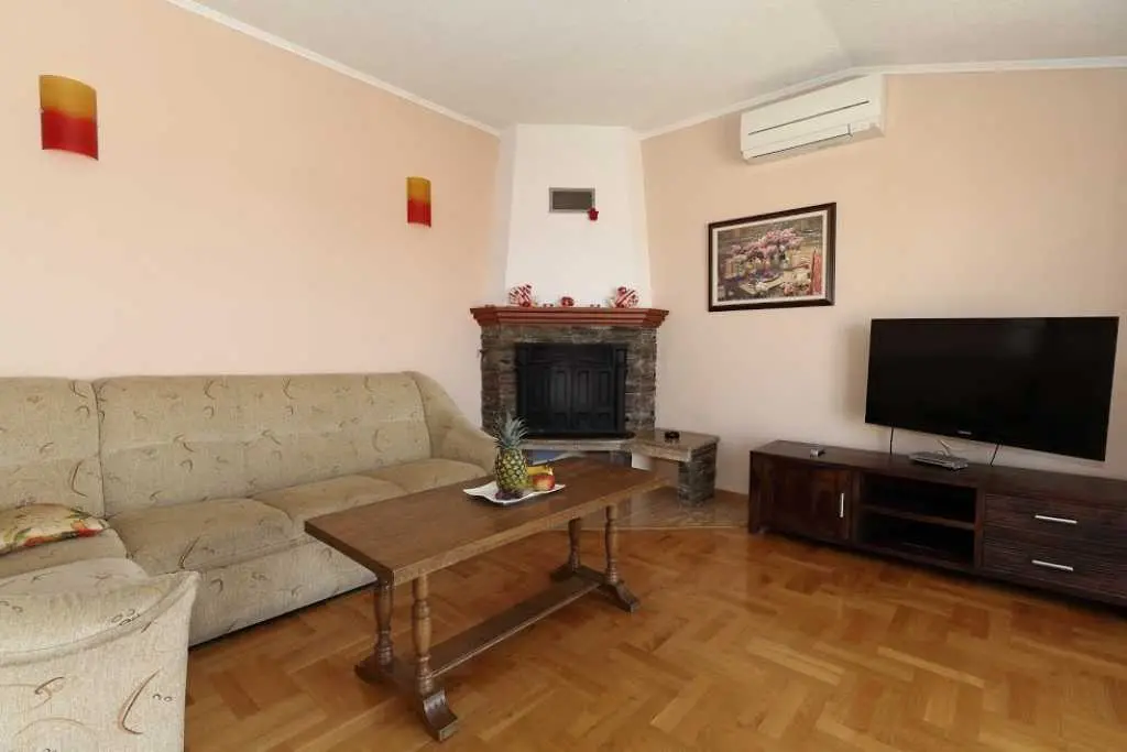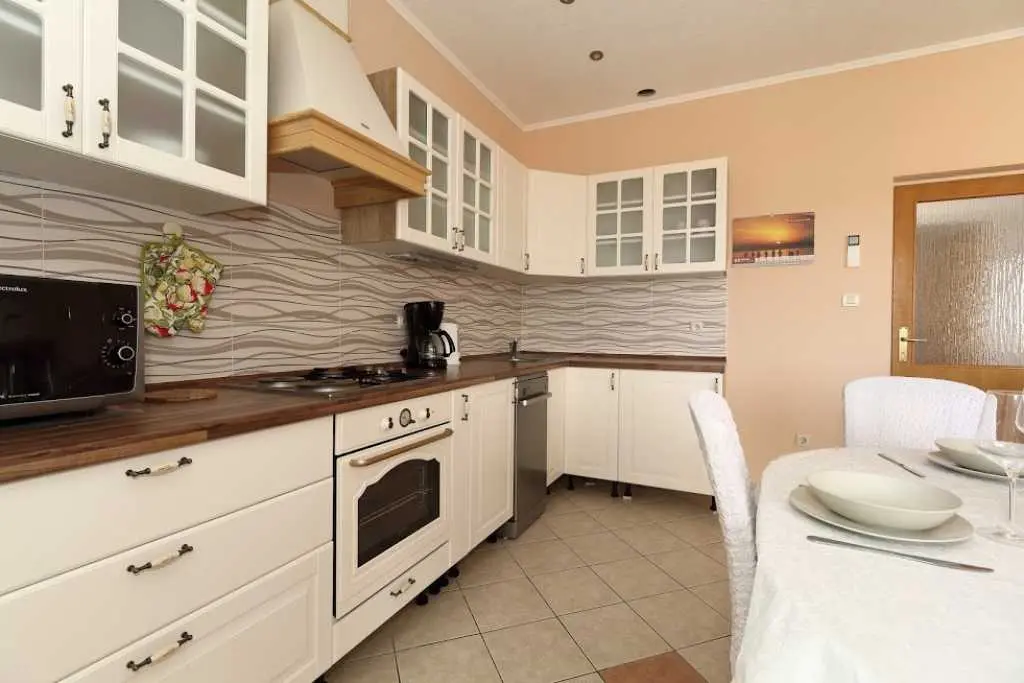 Große geräumige Wohnung in einer ruhigen Straße im Zentrum von Makarska. Die Wohnung nimmt die gesamte obere Etage eines Privathauses ein. besteht aus zwei Schlafzimmern mit eigenen Badezimmern, einem Wohnzimmer mit ausgestatteter Küche, einer Veranda mit Sommerküche und einer Terrasse mit herrlichem Blick auf das Meer und die Stadt. Sie können den Grill im Hof benutzen. Zum Strand zu Fuß 7-10 Minuten, zum Meer 3 Minuten, zum Markt, Geschäften, Hauptplatz 2 Minuten.