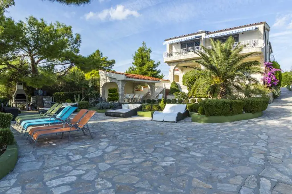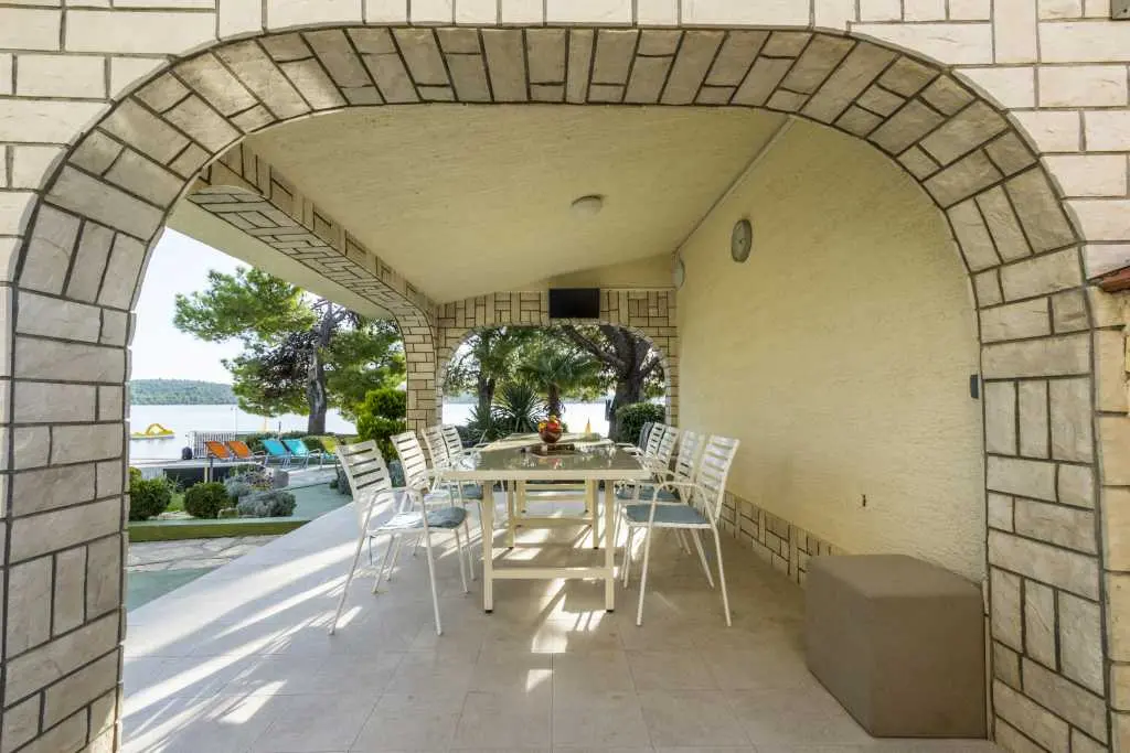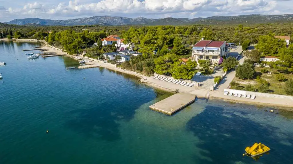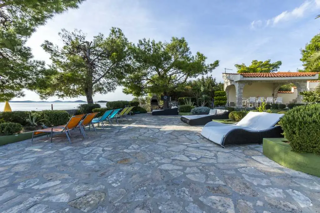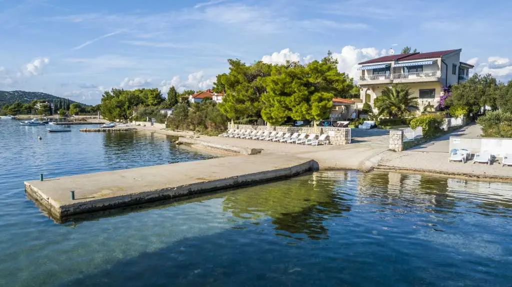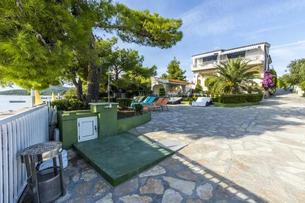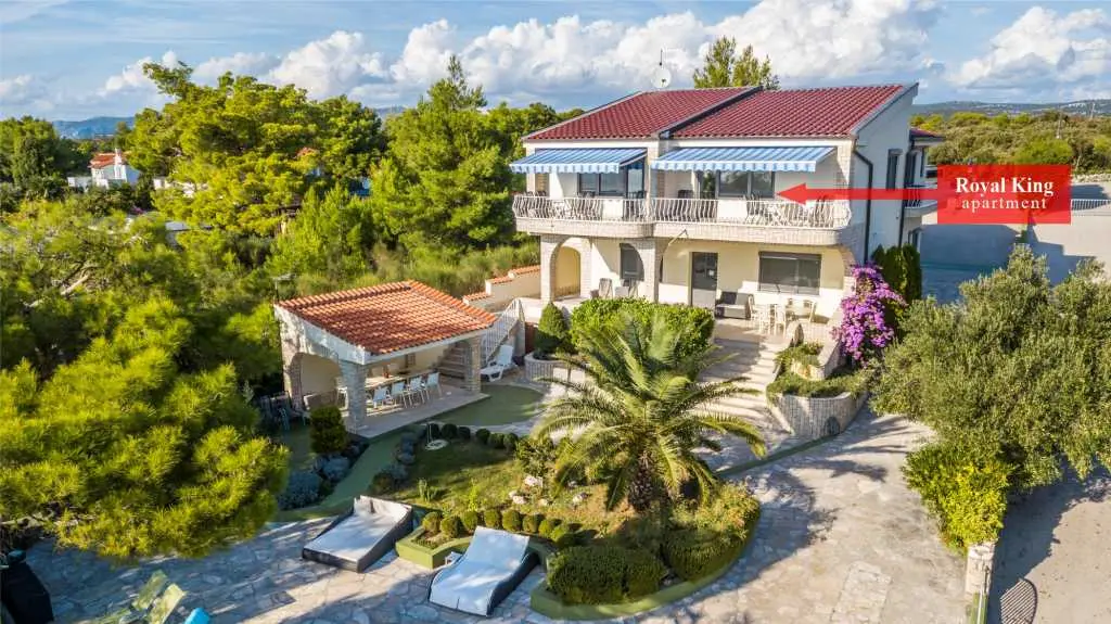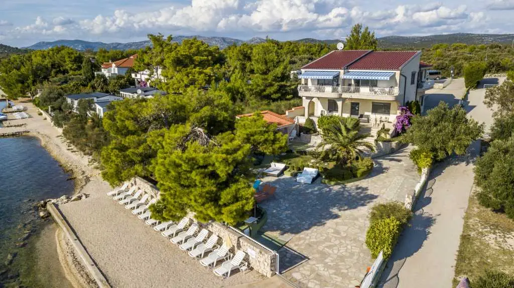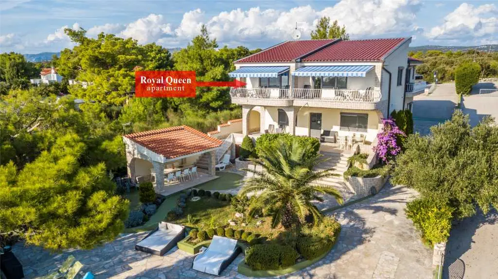 Die Villa Punta Royal liegt direkt am Meer in einer ruhigen Bucht und verfügt über einen eigenen Kiesstrand. Das Meer ist flach und wird tiefer, wenn es von der Küste abweicht, was perfekt für kleine Kinder ist. Vor der Villa befindet sich ein mediterraner Garten, in dem Sie den Charme Dalmatiens und der Adria genießen können. Alles ist an einem Ort, Sie müssen sich keine Sorgen um die Aufbewahrung Ihrer Sachen machen, um zum Strand zu gelangen, da Ihre Wohnung nur 15 Meter vom Strand entfernt ist, der sich vor der Villa befindet. WLAN ist kostenlos und in der gesamten Villa und am gesamten Strand verfügbar. Das Parken ist neben der Villa und ist für alle unsere Gäste kostenlos. Liegestühle und Sonnenschirme im mediterranen Garten und am Strand stehen allen unseren Gästen zur Verfügung und sind kostenlos. Die Apartments sind modern und komplett für Familien ausgestattet. Wir befinden uns in der Mitte der Adriaküste, so dass alle lokalen Sehenswürdigkeiten Dalmatiens in unserer Nähe sind. Genießen Sie Ihren Urlaub, während für Sie in der Villa Punta Royal immer jemand 24 Stunden am Tag zur Verfügung steht.