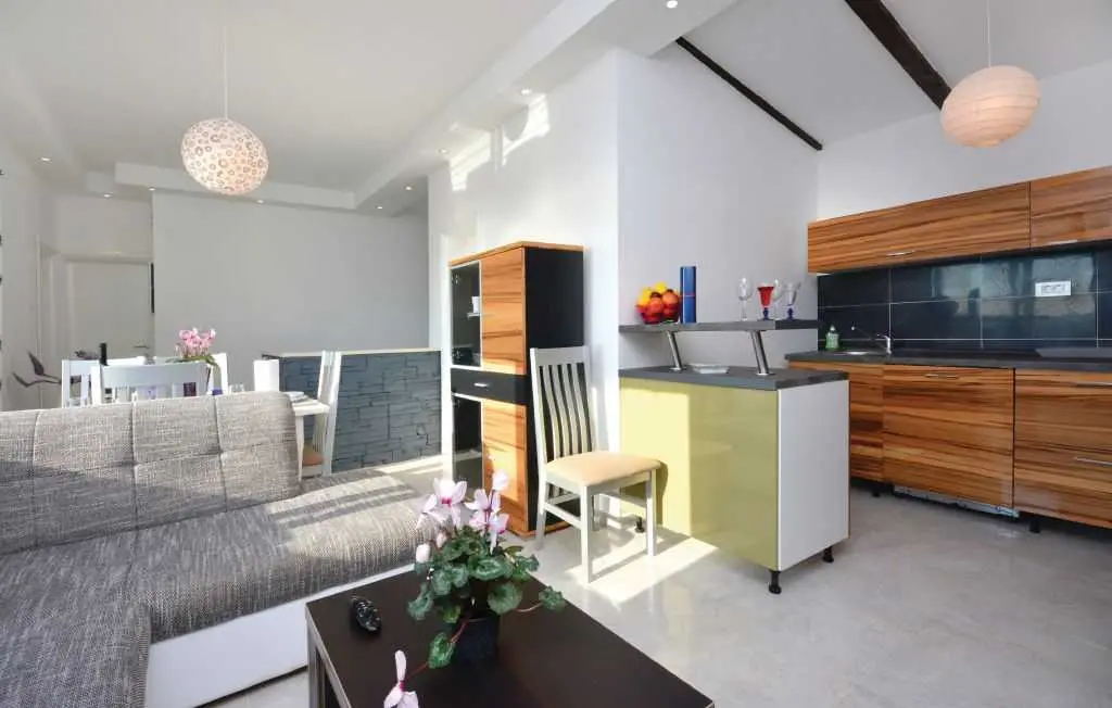 Das Hotel liegt im ersten Stock verfügt über zwei Schlafzimmer, ein großes Wohnzimmer, Küche, Bad, zwei Terrassen, eine mit einer tollen Aussicht, kostenlosen Internetzugang, Spülmaschine und Klimaanlage. 10 Minuten zu Fuß am Strand entlang zum Hotel Le Meridien Lav, das Surfen organisiert, Segeln, Klettern, dort Casino. Podstrana eine ruhige touristische Stadt mit vielen Stränden und Strandeinrichtungen (Restaurants, die dalmatinische Spezialitäten dienen) der Umgebung befinden sich der Palast des Diokletian 8 km Entfernung, die Ruinen Salone. Medugorje 110 km, 60 km von Makarska, Trogir 30 km, 20 km Omis, Dubrovnik 21.5 km, Sibenik 70 km.