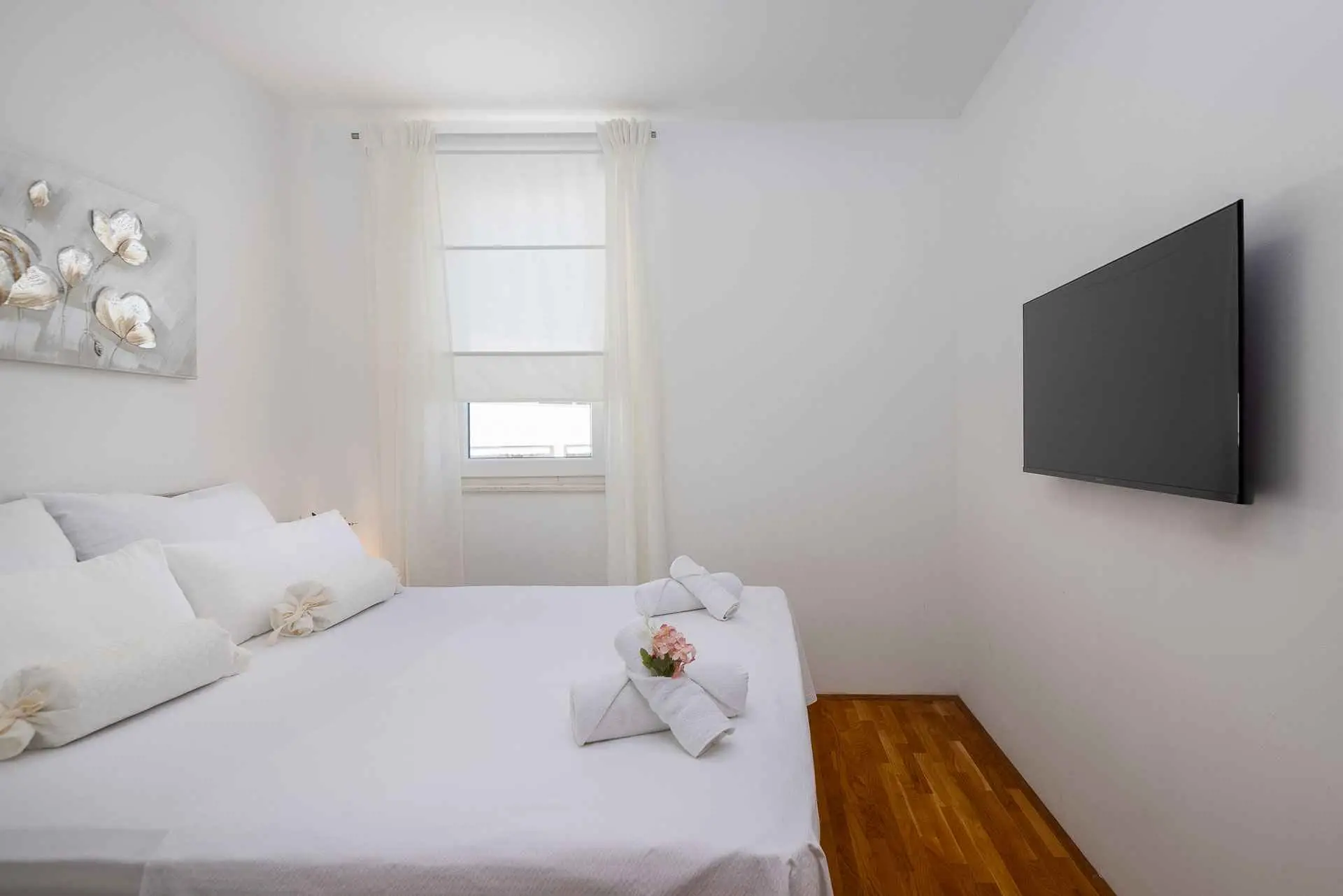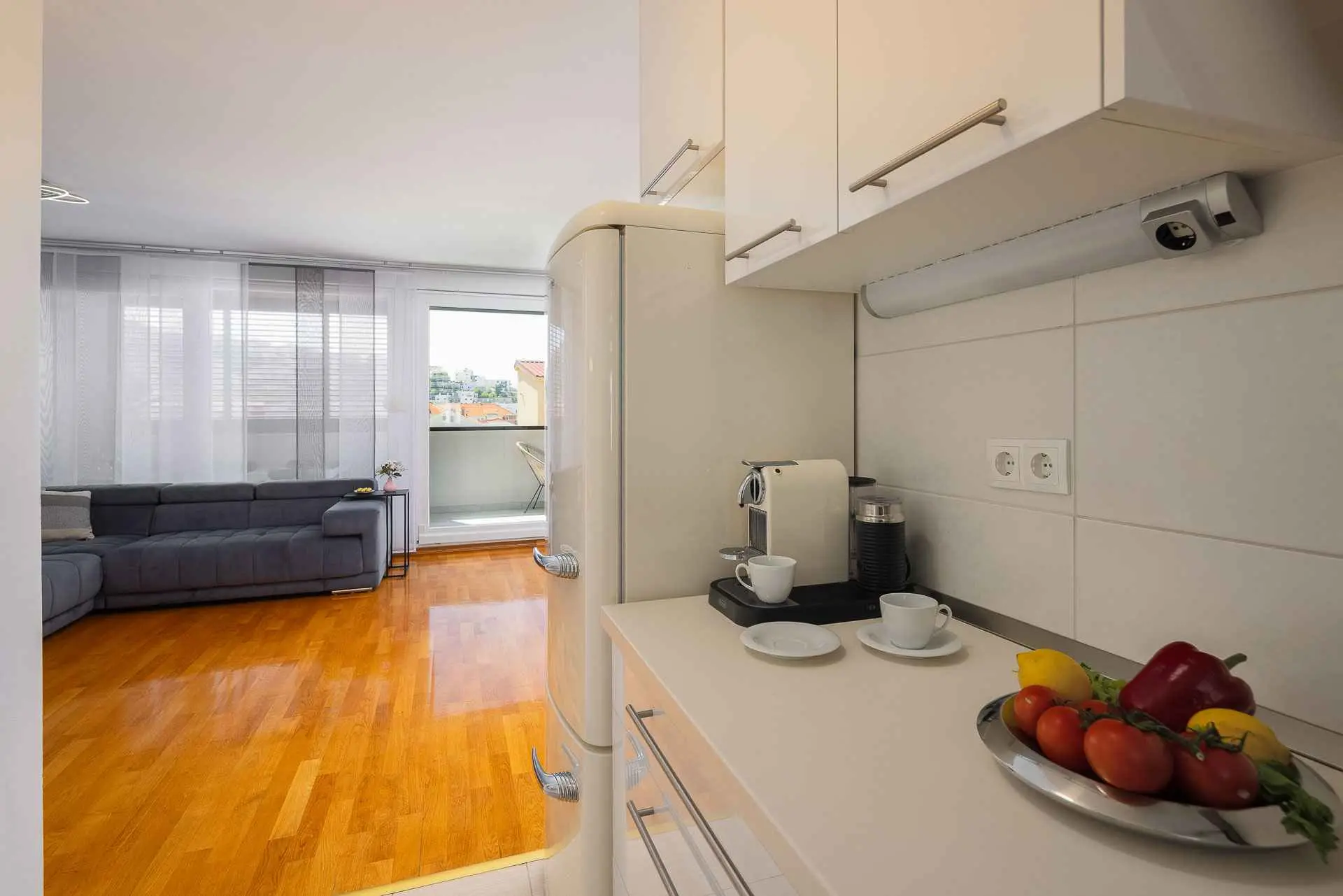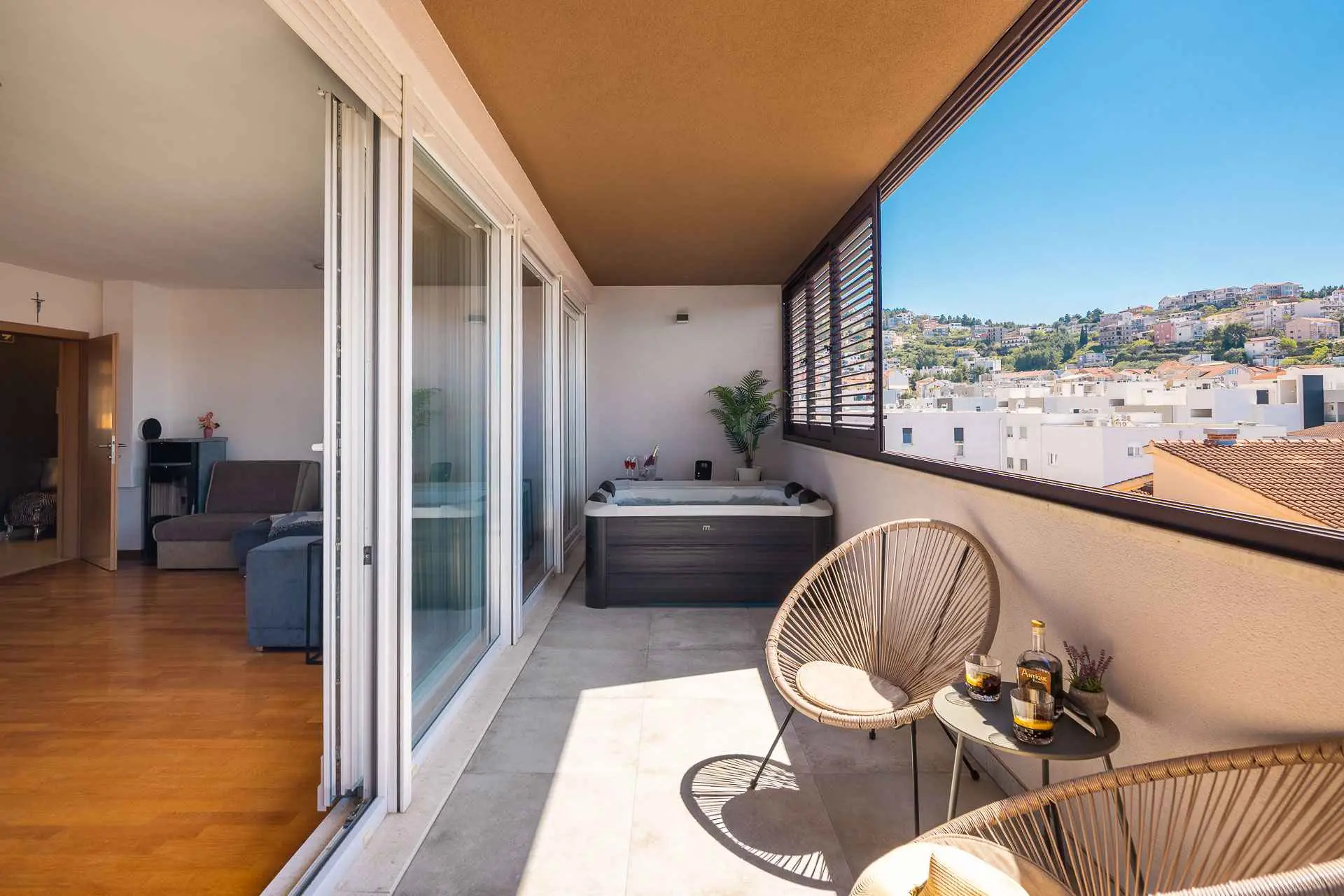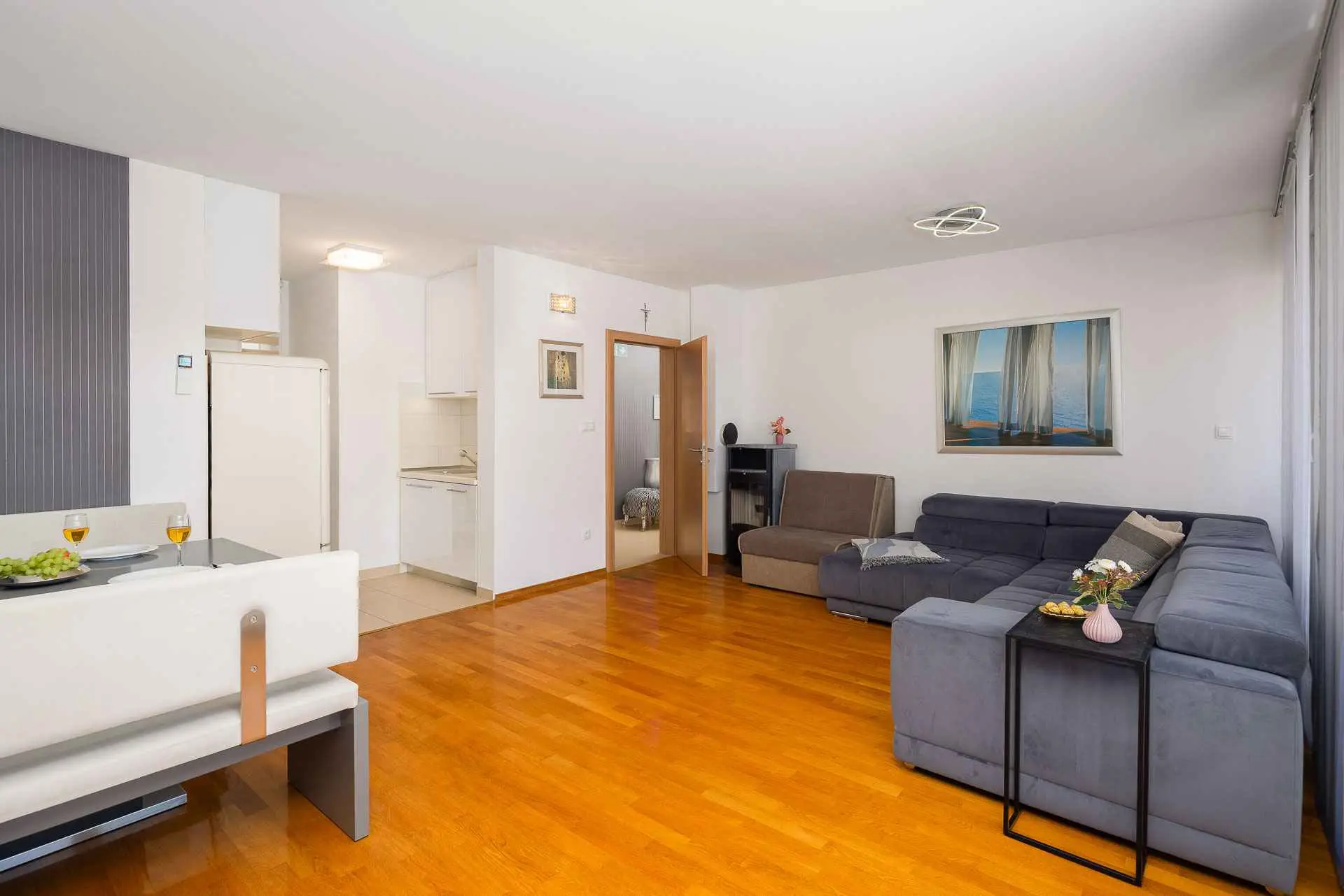 Willkommen im Apartment Sita - Komfortables Penthouse. Das Penthouse verfügt über 2 Schlafzimmer, 1 Badezimmer, Wohnzimmer, Küche und einen geräumigen Balkon. Der Balkon bietet einen schönen Blick auf Podstrana. Die Stadt Split liegt nicht weit von diesem Ort entfernt.