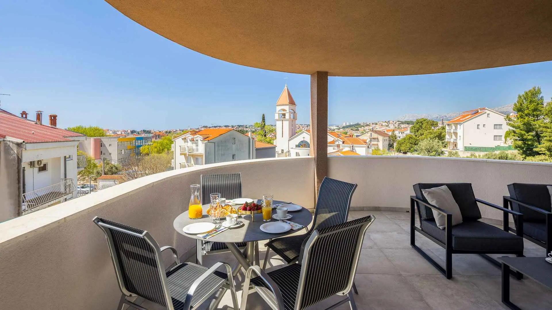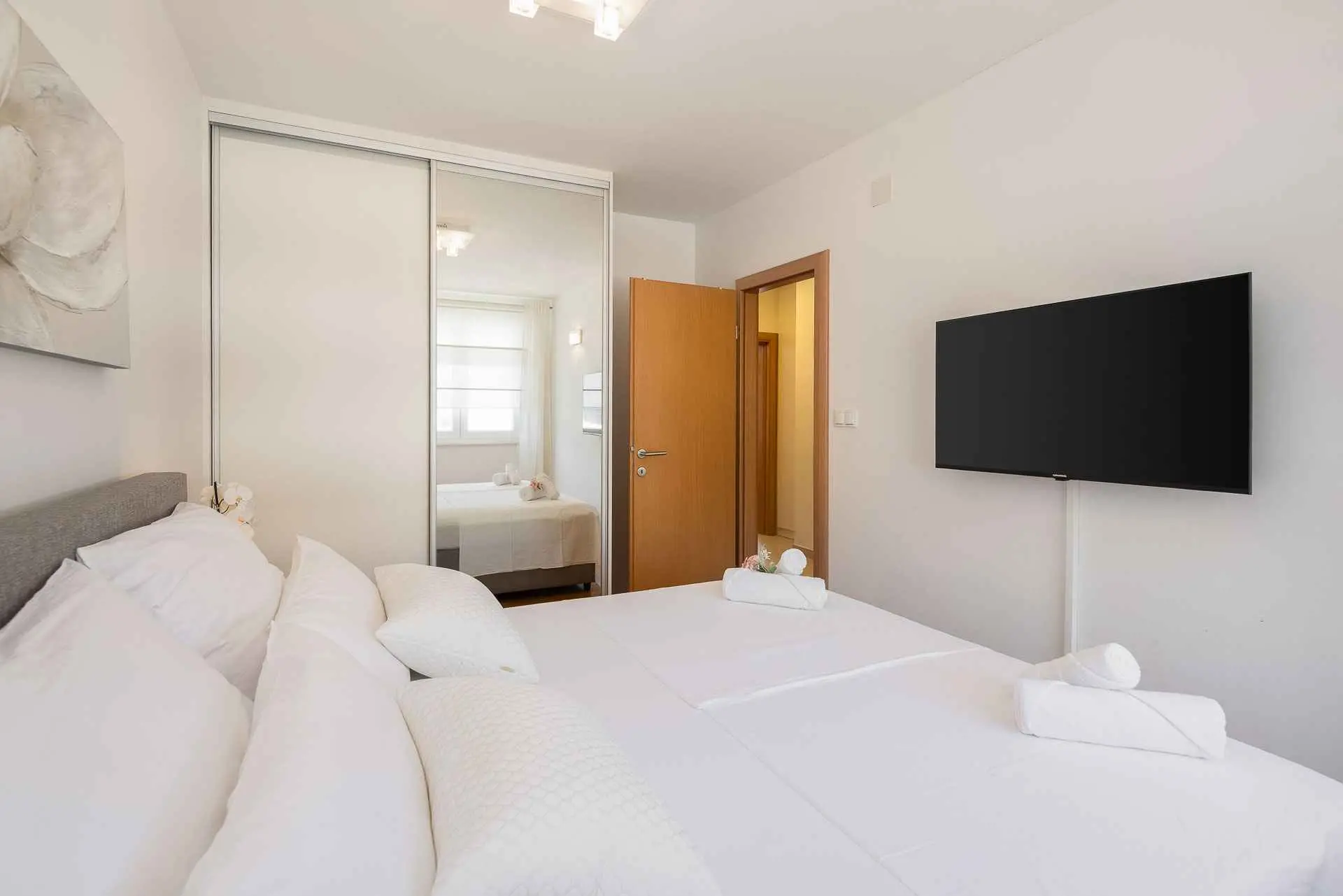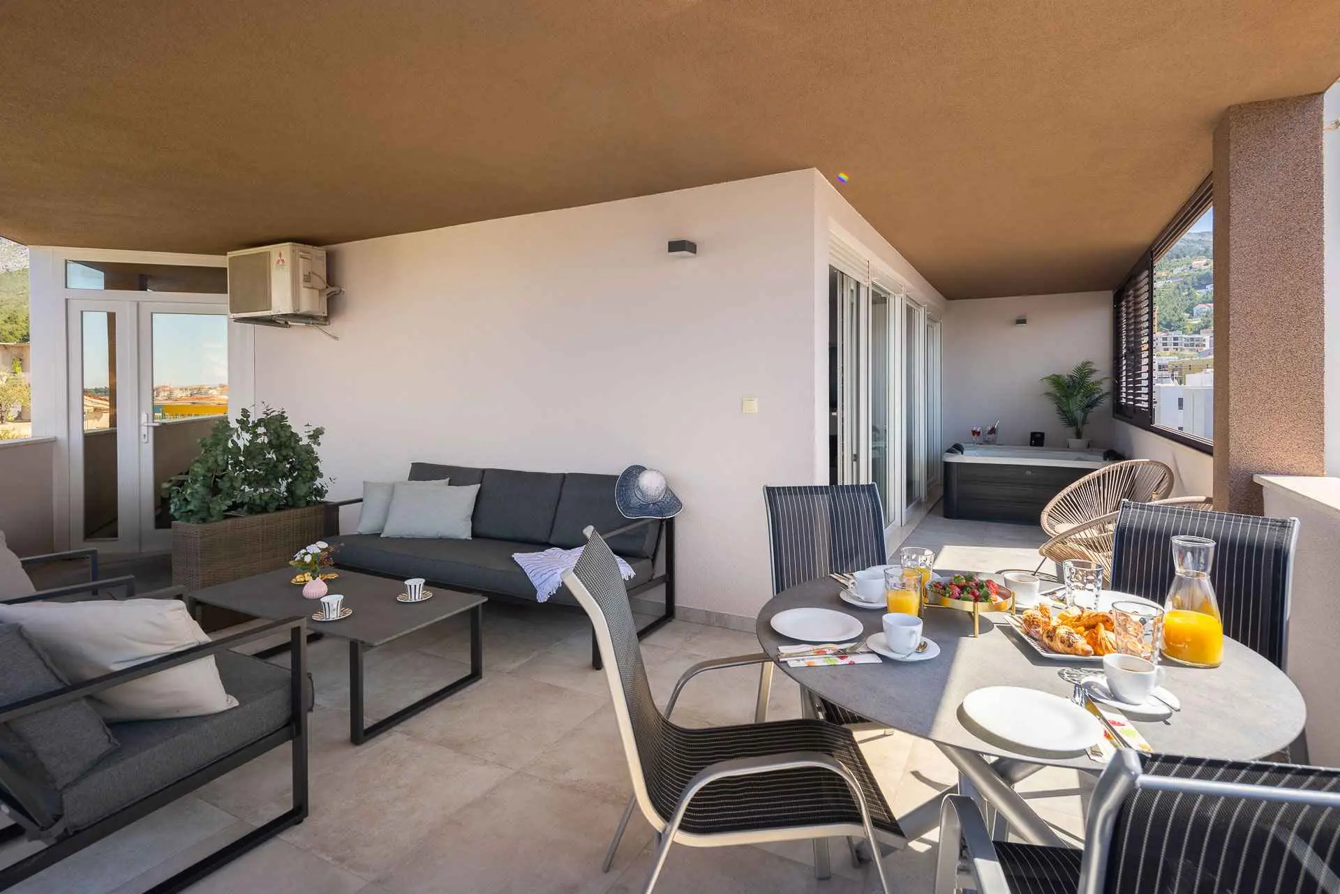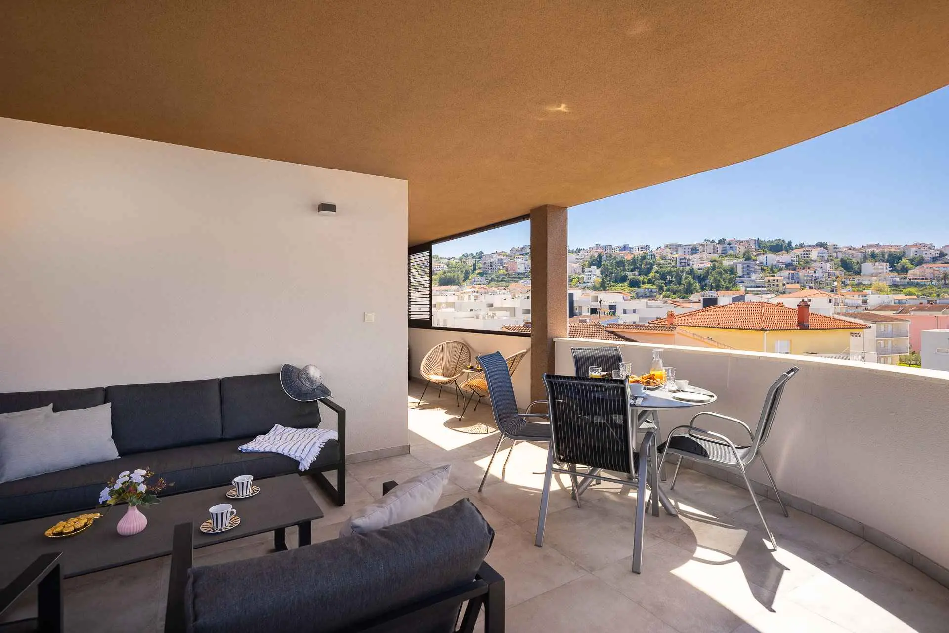 Willkommen im Apartment Sita - Komfortables Penthouse. Das Penthouse verfügt über 2 Schlafzimmer, 1 Badezimmer, Wohnzimmer, Küche und einen geräumigen Balkon. Der Balkon bietet einen schönen Blick auf Podstrana. Die Stadt Split liegt nicht weit von diesem Ort entfernt.