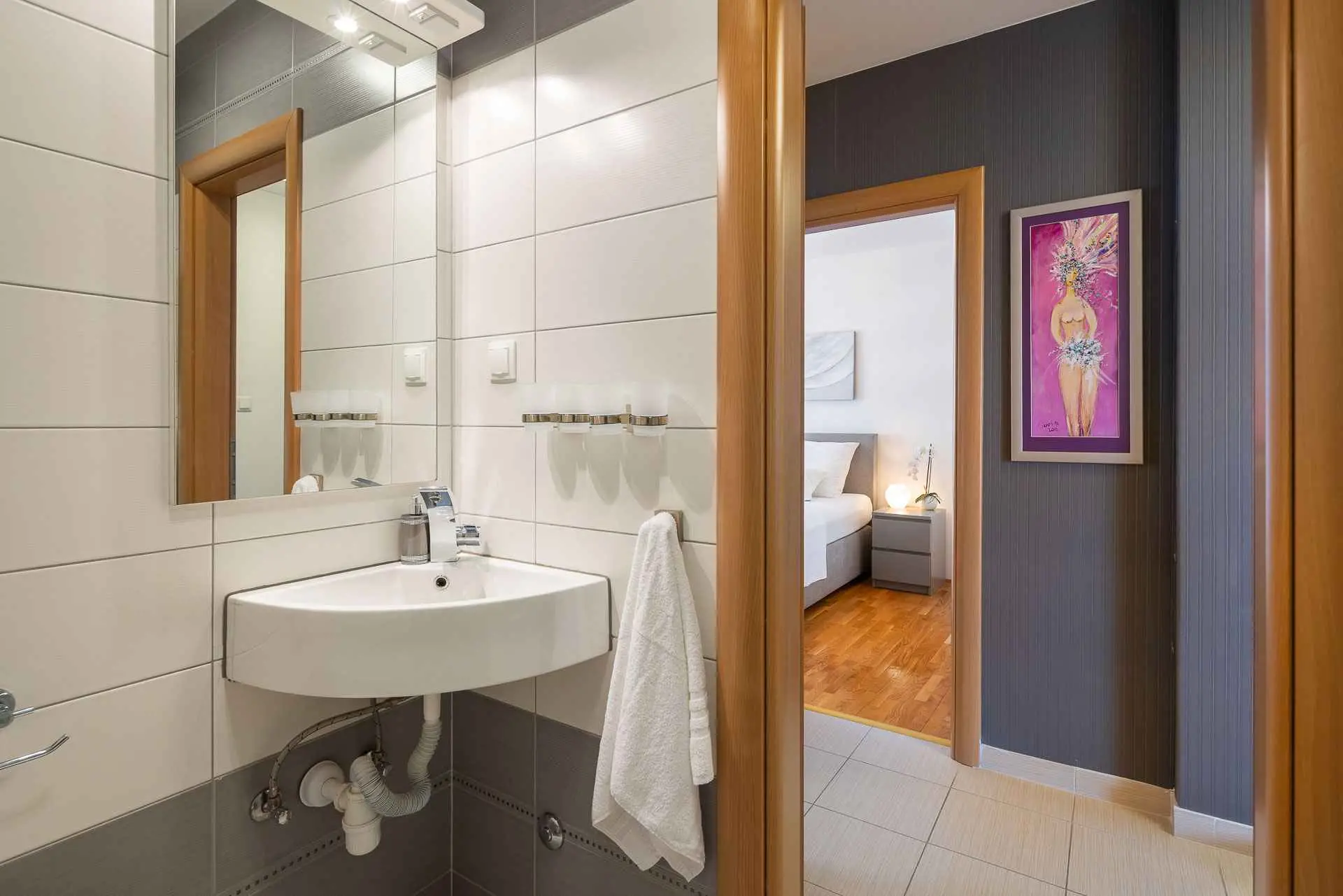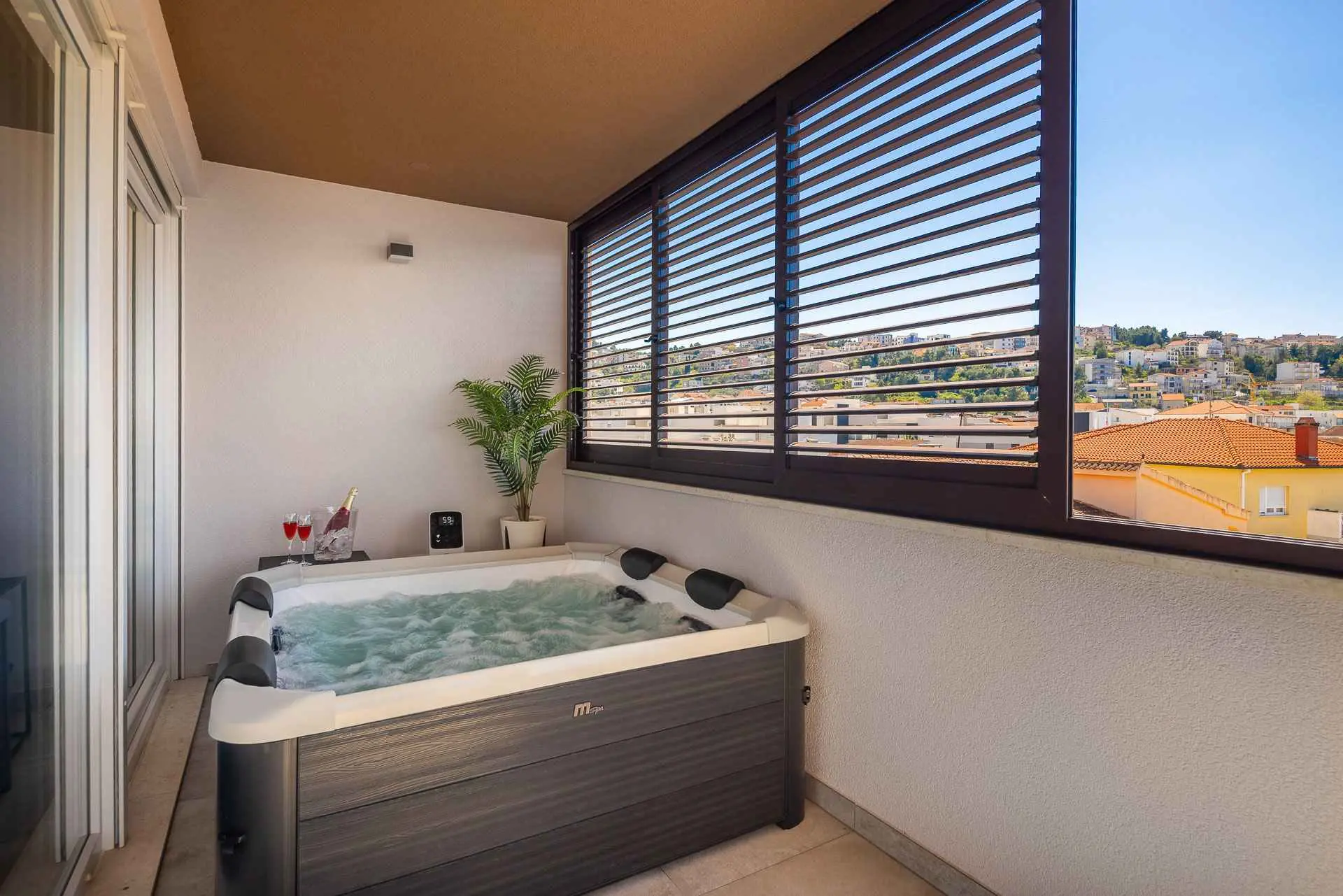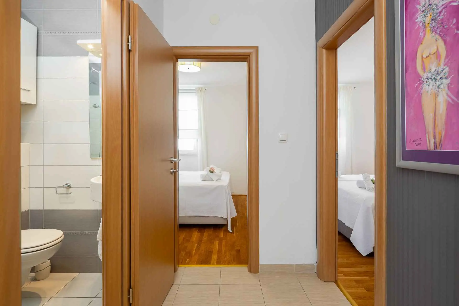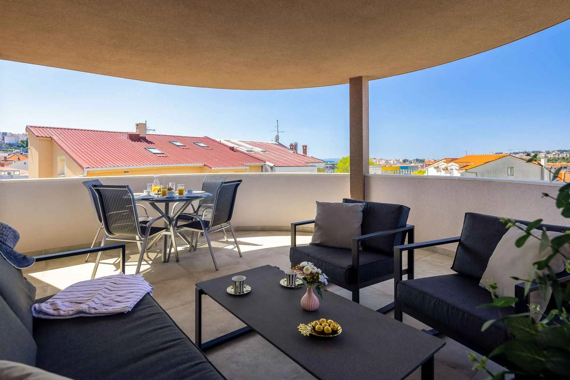 Willkommen im Apartment Sita - Komfortables Penthouse. Das Penthouse verfügt über 2 Schlafzimmer, 1 Badezimmer, Wohnzimmer, Küche und einen geräumigen Balkon. Der Balkon bietet einen schönen Blick auf Podstrana. Die Stadt Split liegt nicht weit von diesem Ort entfernt.