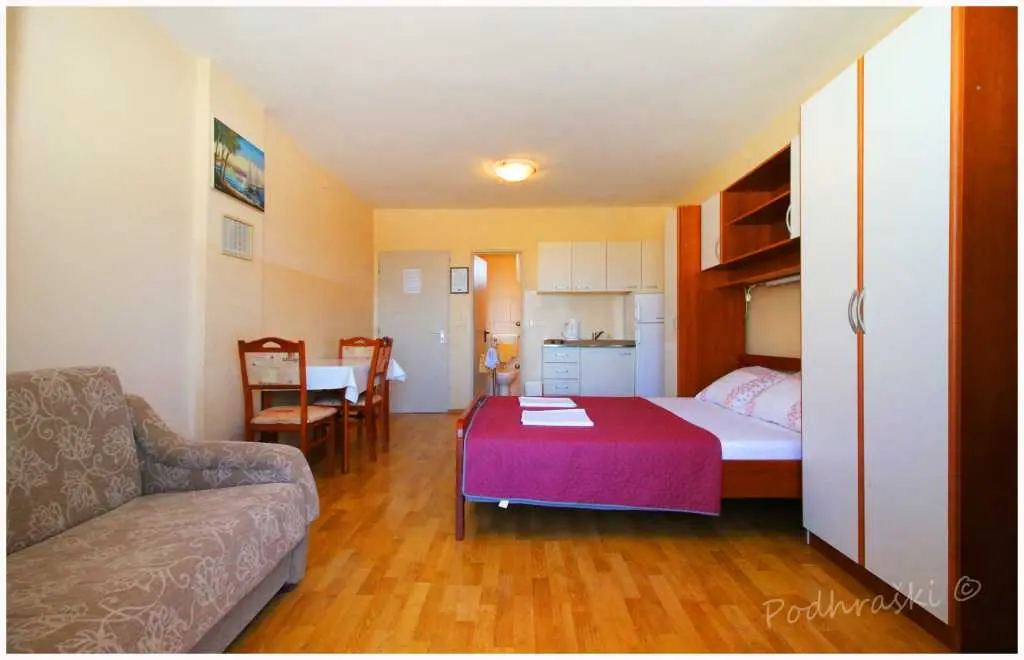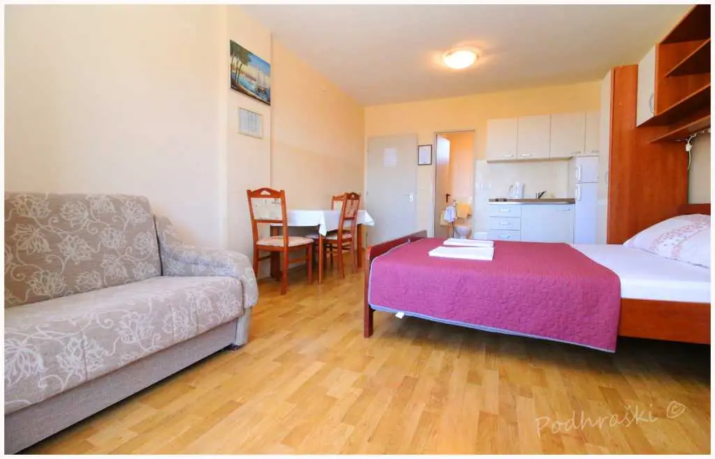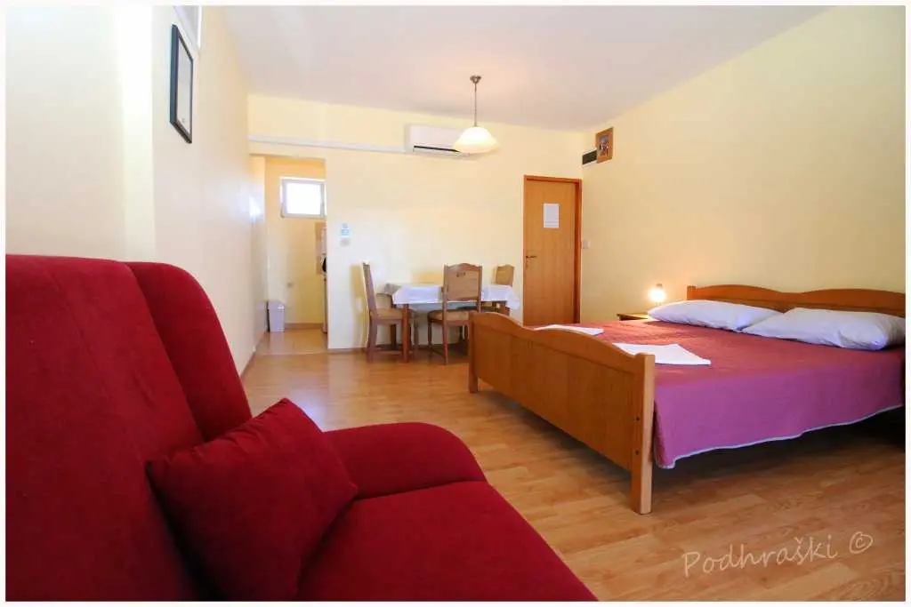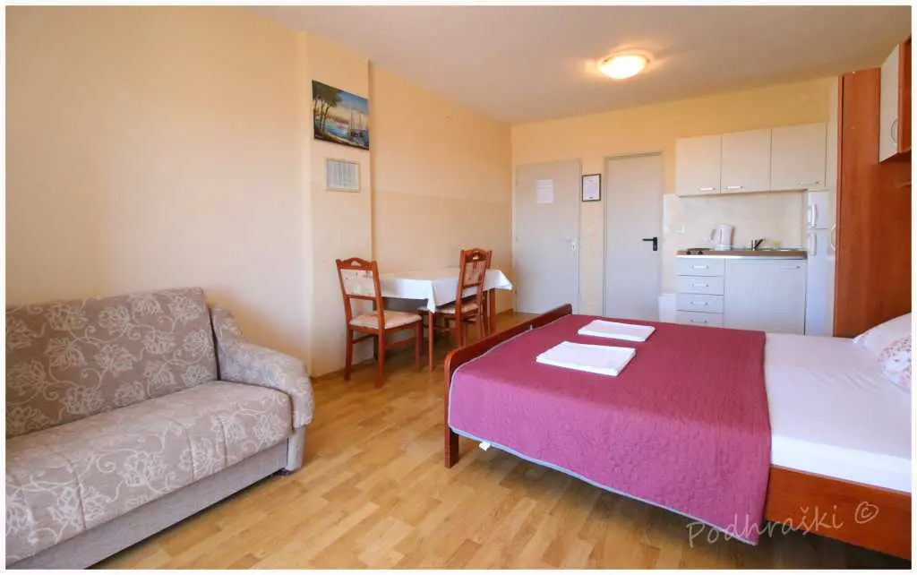Wir vermieten 4 Apartments in Primosten in ruhiger Lage, 200 m vom Hauptplatz entfernt. Die Wohnungen sind neu mit neuen Möbeln renoviert. Der Preis beinhaltet auch einen überdachten Parkplatz, Nutzung von Garten und Grill. Jede Wohnung verfügt über einen Kühlschrank, einen LCD-TV, Klimaanlage, Doppelbett, Sofa-Bett, Bad, Küche, Balkon.