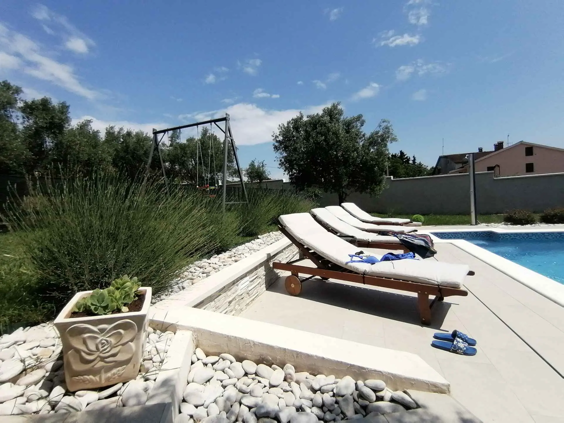 Mel/Stef Apartment ****mit privatem Pool Die Unterkunft beinhaltet; 2 Schlafzimmer, 1 Schlafsofa, 2 Badezimmer, 6 Personen. Mindestaufenthaltsdauer: 5–7 Tage. Das Apartment liegt in einem ruhigen Vorort in der Nähe der Stadt Pula, etwa 2 km entfernt. Den Gästen unserer Privatunterkunft steht ein Privatgrundstück mit privatem Swimmingpool, einer 90 m² großen Terrasse mit Liegestühlen, einem Garten mit Kinderschaukel, einem Grill und einer Außendusche zur Verfügung, was diesen Ort zu einem idealen Ort zum Entspannen und Entspannen macht Familien- oder Freundschaftsurlaub. Eine Gepäckaufbewahrung ist vor dem Check-in und nach dem Check-out möglich, sodass Sie vor der Abreise noch etwas die Stadt und ihre Umgebung erkunden können. Kostenlose überdachte Privatparkplätze stehen zur Verfügung, keine Reservierung erforderlich. Haustiere auf Anfrage. Auf Anfrage sind auch Babybetten erhältlich. Apartment mit ****Sternen mit privatem Pool ist für bis zu 6 Personen geeignet. Es verfügt über kostenloses WLAN, eine Klimaanlage in jedem Zimmer und einen Smart-LCD-TV. Das offene Wohnzimmer verfügt über ein Sofa und einen Sitzbereich und ist mit einer ausgestatteten Küche und einem Esszimmer kombiniert. Ein Badezimmer ist mit einer Dusche und einer Toilette ausgestattet, während das andere mit einer Badewanne und einer Toilette ausgestattet ist. Bettwäsche und Handtücher für die Badezimmer sowie Handtücher für den Pool stehen den Gästen zur Verfügung. Alles ist schnell verfügbar; Die Entfernung zu einem der größten Einkaufszentren in dieser Gegend/Pula City Mall beträgt nur 1,8 km. Gäste können sich auch morgens und nachmittags bei Spaziergängen im Naturpark Šijanska šuma entspannen, der 300 m von der Wohnung entfernt liegt und sich ideal für tägliche Spaziergänge eignet und die Erkundung immergrüner Pflanzen, der Busbahnhof ist nur 100 m von der Wohnung entfernt.