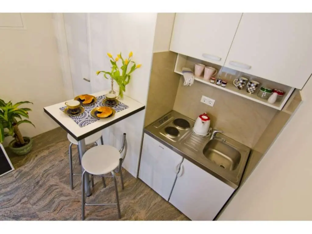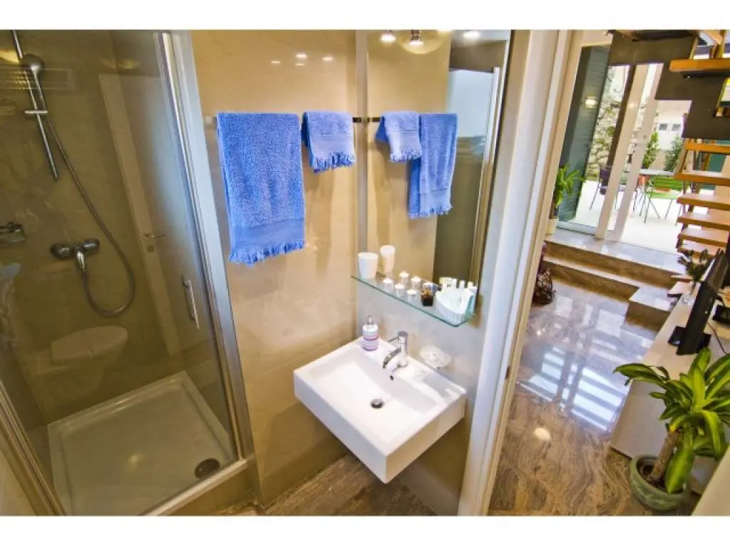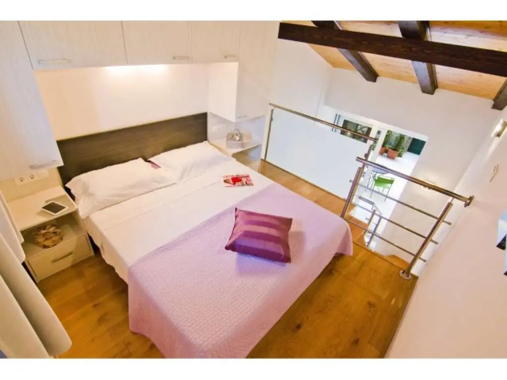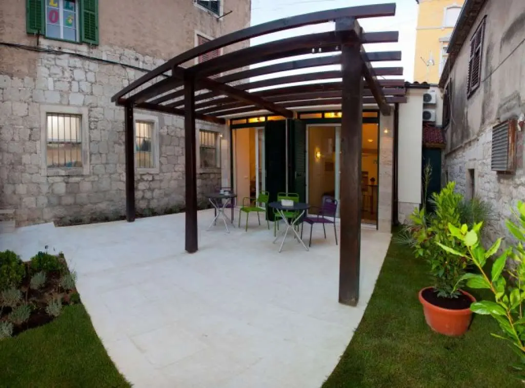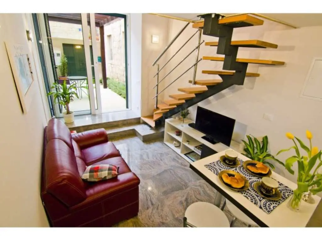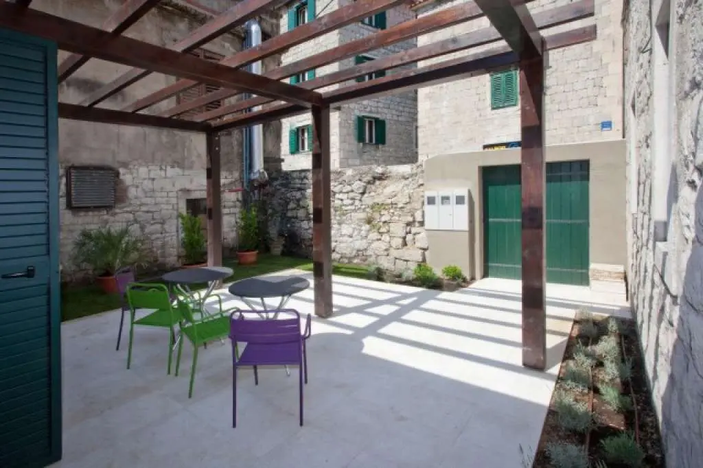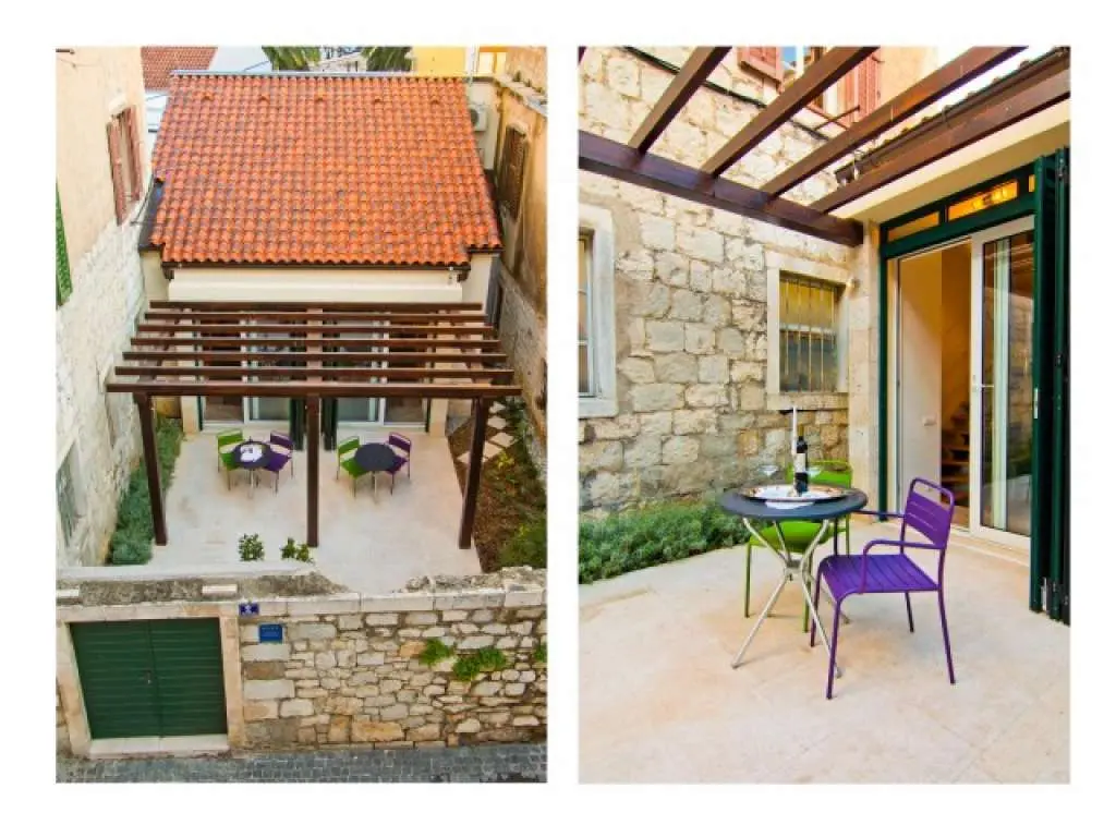 Veig Palace Vier-Sterne-Apartments sind zwei ( twin) neue Luxus-Studio-Apartments auf zwei Etagen. Sie sind entworfen, um zwei Personen Platz und bestehen aus einem Schlafzimmer (Dachgeschoss), Bad und Wohnzimmer mit Küche, und der ummauerten Innenhof, der ein seltenes Privileg der privaten Unterkünfte in der expliziten Stadtzentrum ist. Sie sind in der Mitte des alten Teil der Stadt auf 250 m vom Diokletianspalast und 200 m von Riva (die Promenade), und 10 Minuten entfernt vom Bahnhof, Busbahnhof und dem Fährhafen zu Fuß erreichbar. Die Wohnungen sind klimatisiert und sind mit TV, WLAN und einen elektronischen Safe gekennzeichnet.