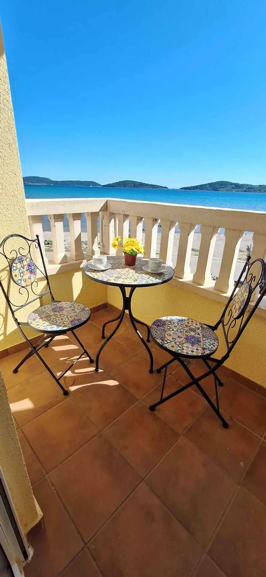Apartment direkt am Meer, mit Blick auf das Meer bietet einen schönen Urlaub in einem ruhigen Ort Srima in der Nähe von Vodice. Die Wohnung hat zwei Betten und ein Doppelbett, hat eine Klimaanlage, jedes Zimmer hat einen eigenen LCD-TV, einen eigenen privaten Parkplatz. Wir haben auch Grill für alle unsere Gäste. Zug fährt laut Fahrplan zu günstigen Preisen nach Vodice. Ein idealer Ort, um sich von der täglichen Hektik zu erholen. Café und Restaurant nur 50 Meter von der Wohnung entfernt und im Umkreis von 100 m mehrere Strände.