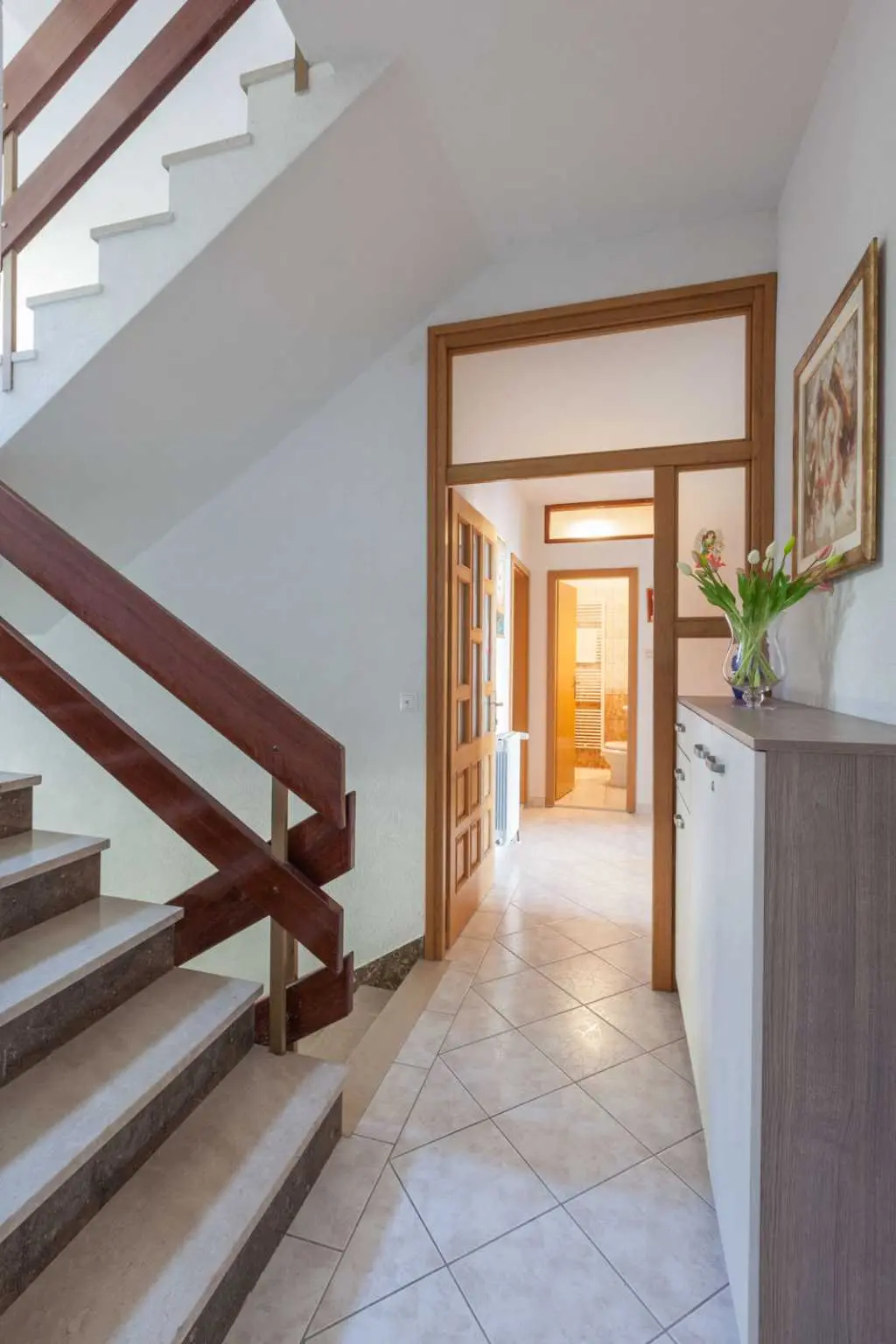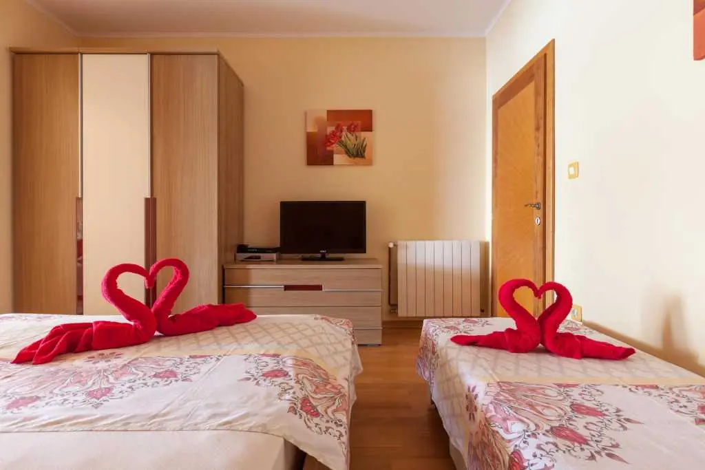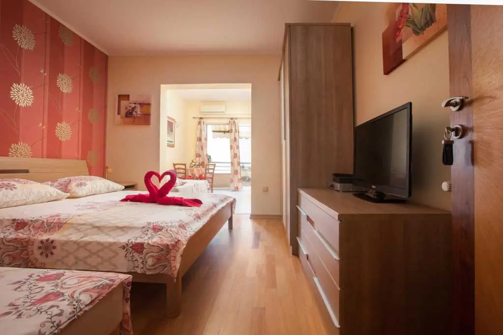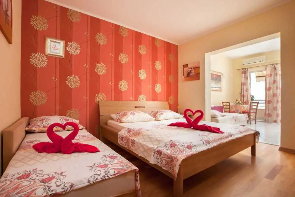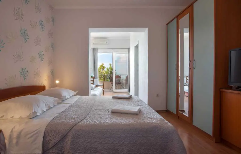 Die familiengeführten Apartments Simic befinden sich am Strand Tučepi, der allgemein als der längste, schönste und sauberste Strand an der Adria bekannt ist. Tucepi ist ein berühmter Sommerurlaubsort mit einem idealen Klima im Zentrum der Riviera von Makarska. Oberhalb von Tucepi erhebt sich der Biokovo-Berg (1762 m). 3 + 2 Apartments bieten einen schönen Blick auf das Meer und die Inseln. Sie sind nach jahrelanger Erfahrung ausgestattet und hören auf die Wünsche unserer früheren Gäste. Die Gäste haben das Recht, eine große Terrasse auf dem Dach zu nutzen, auf der Sie sich sonnen oder einen Grill genießen und mit einem fantastischen Blick auf das Meer, die Berge und den vollständigen Panoramablick auf Tucepi speisen können, was einfach atemberaubend ist. Die Apartments verfügen über eine Küche, ein Bad, eine Klimaanlage, einen TV und Sat-TV. Alle Gäste haben Anspruch auf kostenlosen WLAN-Internetzugang und kostenlose Parkplätze. Der Vorteil unserer Apartments ist, dass sie sich in einer ruhigen Straße "Kamena" befinden, in der sich die schönsten Häuser des Dorfes befinden. Es ist nur 300 m vom Zentrum entfernt. In unmittelbarer Nähe gibt es eine Reihe von Restaurants, in denen Sie alle dalmatinischen Spezialitäten probieren können. Während des Sommers organisiert Tučepi Angelfestivals, bei denen Sie abends lokales Essen genießen, trinken und lokale Musik hören können. Für diejenigen, die bis in die frühen Morgenstunden Spaß haben möchten, gibt es Makarska, eine größere Stadt, die für ihr Nachtleben bekannt ist. Sie ist nur 5 km entfernt und gut mit Taxis und Bussen verbunden.