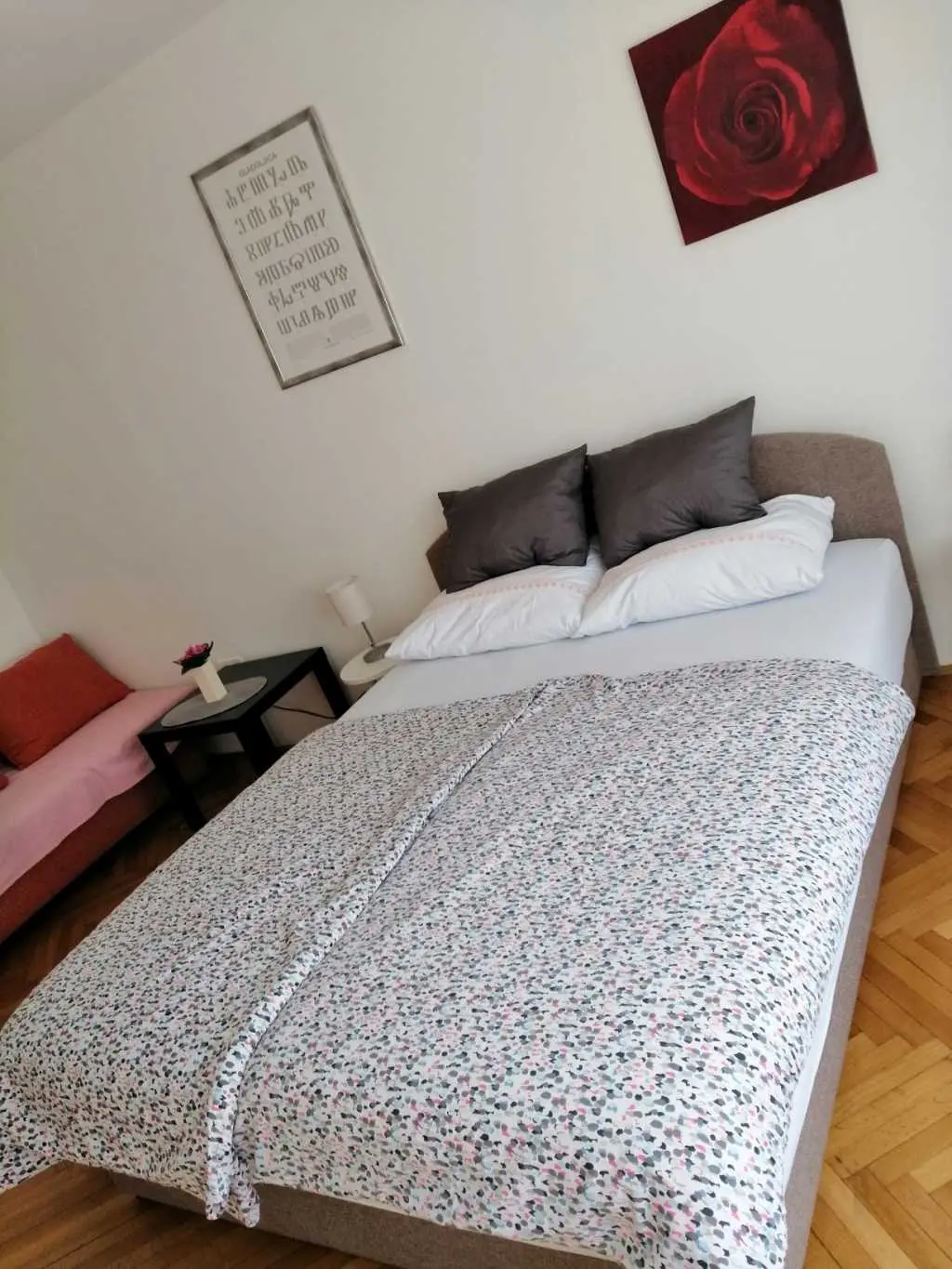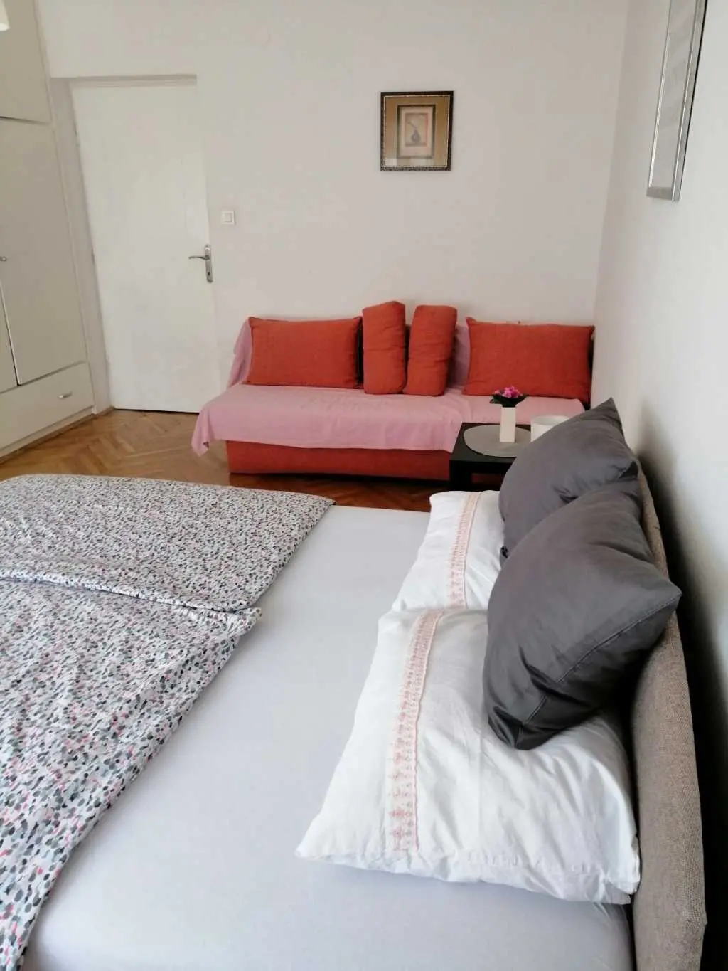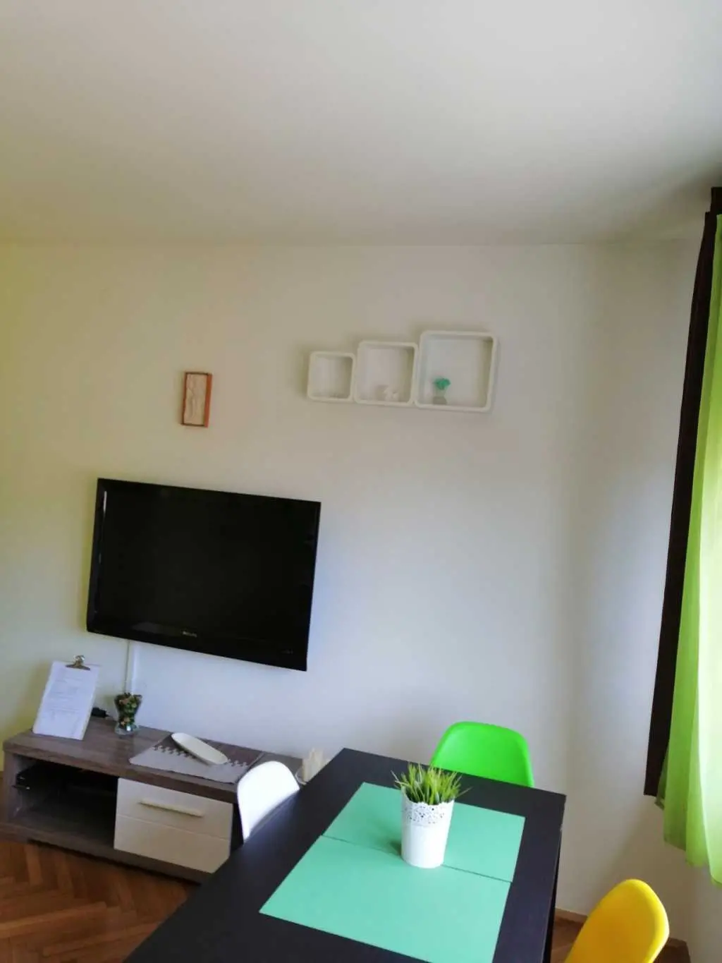 Apatman mit zwei Schlafzimmern, bestehend aus Wohnzimmer, Schlafzimmer, Küche, Bad, Flur und Balkon. Es ist geeignet für 2 + 2 zu bleiben. Neben der Wohnung bieten wir einen schönen Parkplatz im Innenhof des Gebäudes. Die Wohnung befindet sich im 3. Stock des Gebäudes und Sie müssen die Treppe benutzen.