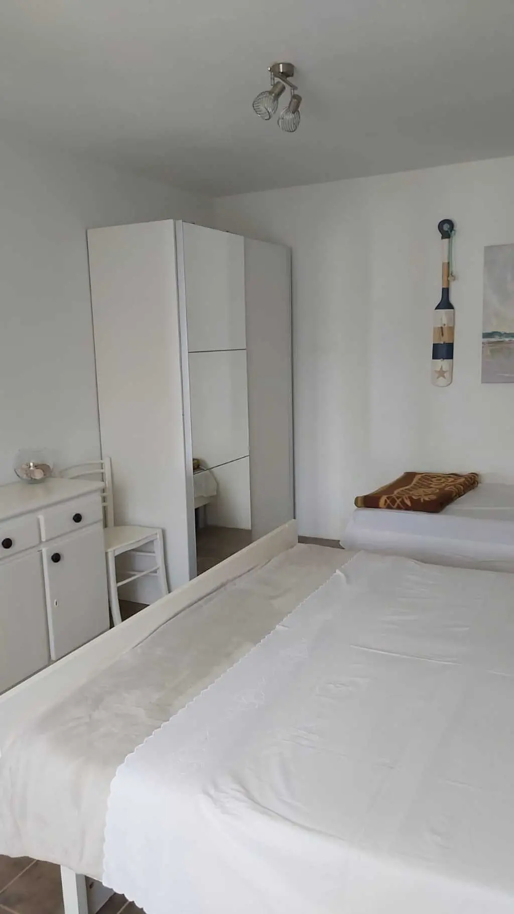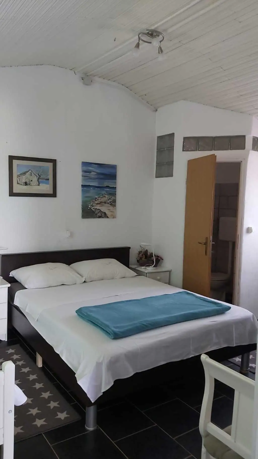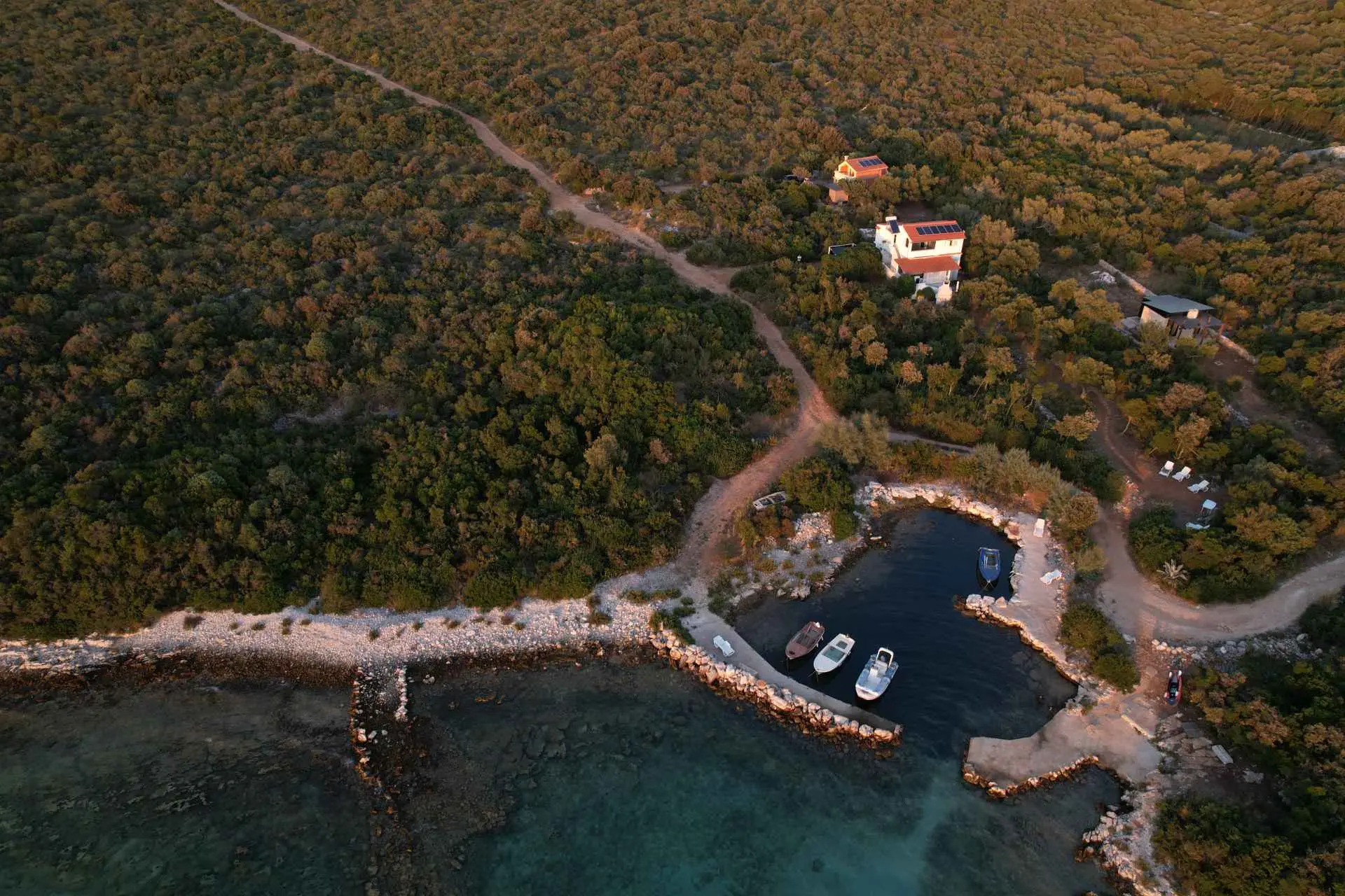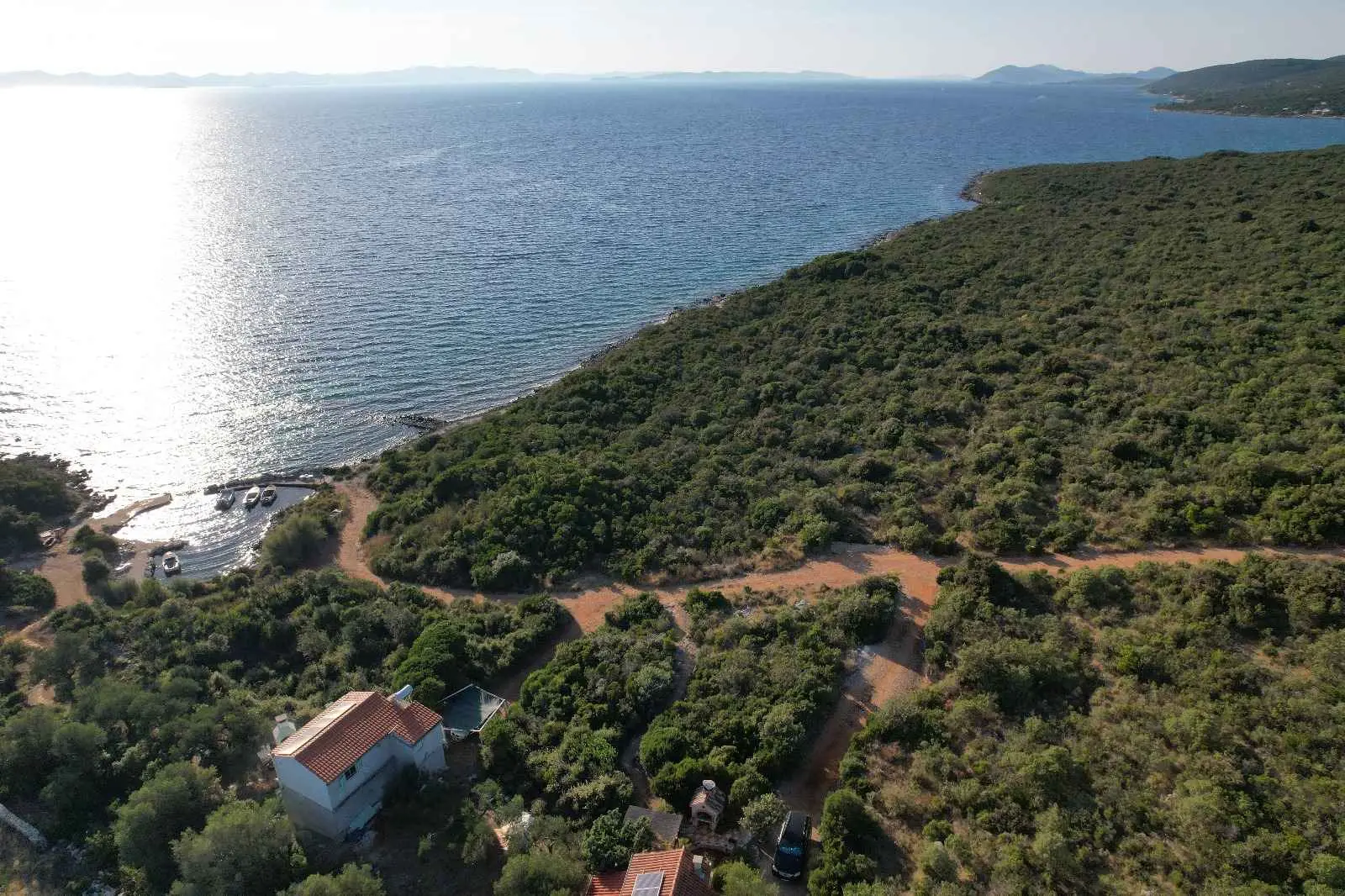 Das Robinsonhaus „Sunset Romance“, GANZ zu vermieten, befindet sich auf der Südseite der Insel Pašman, in einer wunderschönen kleinen Bucht, Stivanja, 50 m vom Meer entfernt, erste Reihe zum Meer, 5 km von der Stadt Neviđane entfernt, auf der Nordseite der Insel, die mit der Fähre Zadar – Preko (20 km mit dem Auto) oder Biograd – Tkon (15 km) erreichbar ist. Es ist von der Staatsstraße D 110, Kreuzung Neviđane, auf einer unbefestigten Straße, die vorsichtigeres Fahren erfordert, direkt zum Parkplatz neben dem Haus zu erreichen oder mit dem Boot, einem kleinen Schnellboot, in der Bucht zu einem vereinbarten Platz. Für Ihr Boot ist eine vorherige Absprache erforderlich, damit in der Bucht Platz ist! Es ist umgeben von Grün und Olivenbäumen auf einem 400 m2 großen Grundstück, erste Reihe zum Meer, das sich bis zu 10 m vom Meer entfernt erstreckt, neben vier kleineren Häusern in 20 m Entfernung, die ebenfalls zu vermieten sind. Das Haus bietet Platz für bis zu 6 (sechs) Personen (2x(2+1)+1), verfügt über ein Erdgeschoss und ein Obergeschoss mit Terrassen und ist nach Süden ausgerichtet mit Blick auf das Meer, den Nationalpark Kornati und die Inseln des Zadar-Archipels. Im Erdgeschoss befinden sich ein großer Grill, eine Terrasse mit Tisch und Stühlen, eine Solar-Außendusche sowie Zugang zur Küche und zum Wohnzimmer. Die Küche ist mit Spüle, eingebautem 4-fach-Gasherd, kombiniertem Kühlschrank, Geschirrspüler, Mikrowelle, Mixer und Wasserkocher ausgestattet. Neben der Küche befindet sich das Wohnzimmer mit Bartheke und Stühlen sowie einem Einzelbett. Vom Wohnzimmer aus gelangt man auf der einen Seite in das Badezimmer mit Dusche, Warmwasser und Toilette und auf der anderen Seite in ein Schlafzimmer (2+1) mit einem Doppelbett und einem Einzelbett sowie einer separaten Toilette! Für kältere Tage ist das Haus mit einem Holzofen ausgestattet. Von der Terrasse führt eine offene Treppe in das Obergeschoss. Wohnzimmer mit Tisch und Stühlen, Eingang zur Küche mit Spüle (Warmwasser) und Kühlschrank, Gasherd (kein Backofen), Badezimmer mit Dusche sowie zum Schlafzimmer (2 + 1) mit einem Doppelbett und einem Einzelbett für eine Person, separate Toilette. Vom Wohnzimmer aus gibt es einen Ausgang zur Terrasse mit kleinem Tisch und Sesseln und Aussicht auf das Meer und die Inseln. Das Wasser im gesamten Haus ist Regenwasser – Trinkwasser, es wird mit einem Tankwagen gebracht. Es wird empfohlen, das Wasser vor der Verwendung zum Trinken abzukochen. Tank 10 m3. Es ist notwendig, sparsam damit umzugehen, da es von einem Tankwagen aufgefüllt wird, der nicht immer sofort verfügbar ist. Der Strom kommt von 6 Solarkollektoren, im ganzen Haus 220 V. Alle Räume sind mit LED-Energiesparlampen beleuchtet. Smart-TV und WLAN! Auf dem eigenen Grundstück, 10 m vom Meer entfernt, sind Liegestühle aufgestellt, um Sonnenuntergänge und eine Pause von der strahlenden Sonne zu genießen. Hinweis: In der Vor- und Nachsaison vom 26. April bis 17. Mai und vom 27.9. bis 2025 ist es möglich, nur das Erdgeschoss für 2 Personen zu mieten, mit bis zu 20 % Rabatt (Haustierpreis bleibt 8 € pro Tag). Wir empfehlen Ihnen, nach Ihrer Ankunft den allgemeinen Zustand des Hauses zu überprüfen, um Unannehmlichkeiten zu vermeiden. Spätere Reklamationen werden nicht akzeptiert! Wir bitten Sie, eventuelle Schäden rechtzeitig zu melden, damit diese rechtzeitig behoben werden können. Die Endreinigung ist obligatorisch und kostenlos. Ihre Gastgeber wünschen Ihnen einen schönen Urlaub!