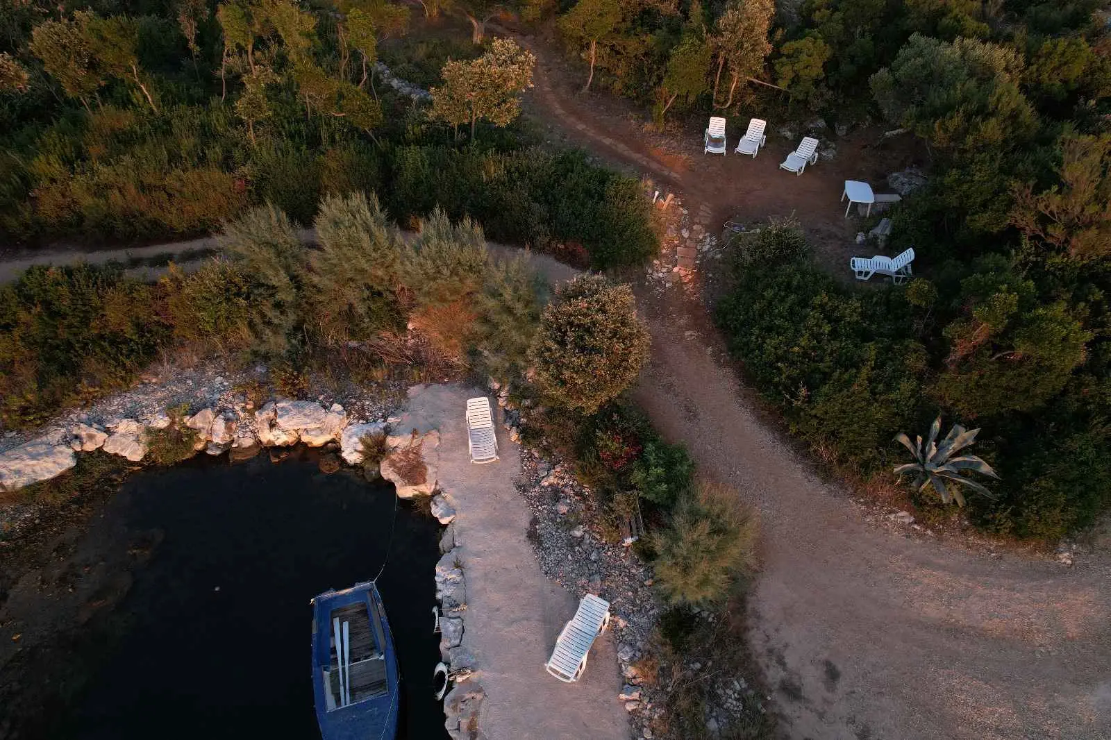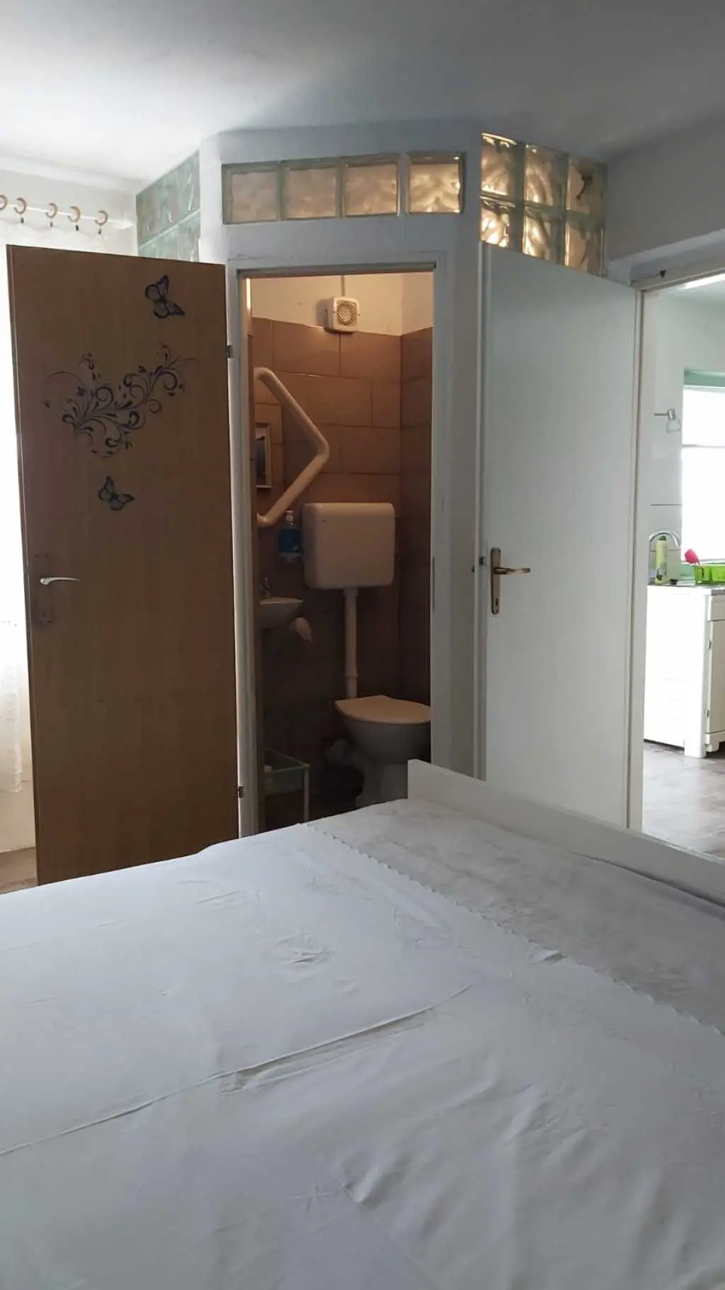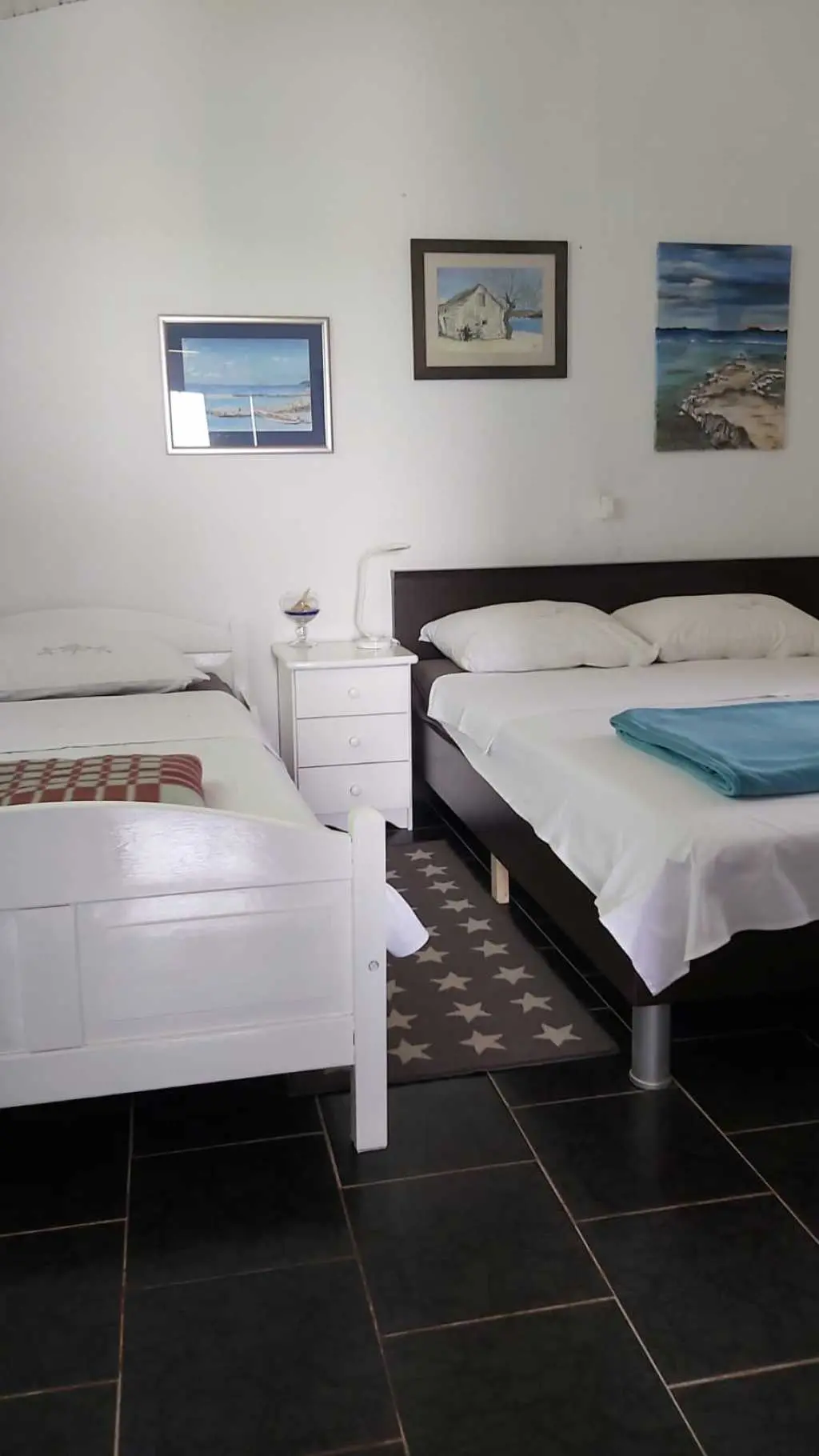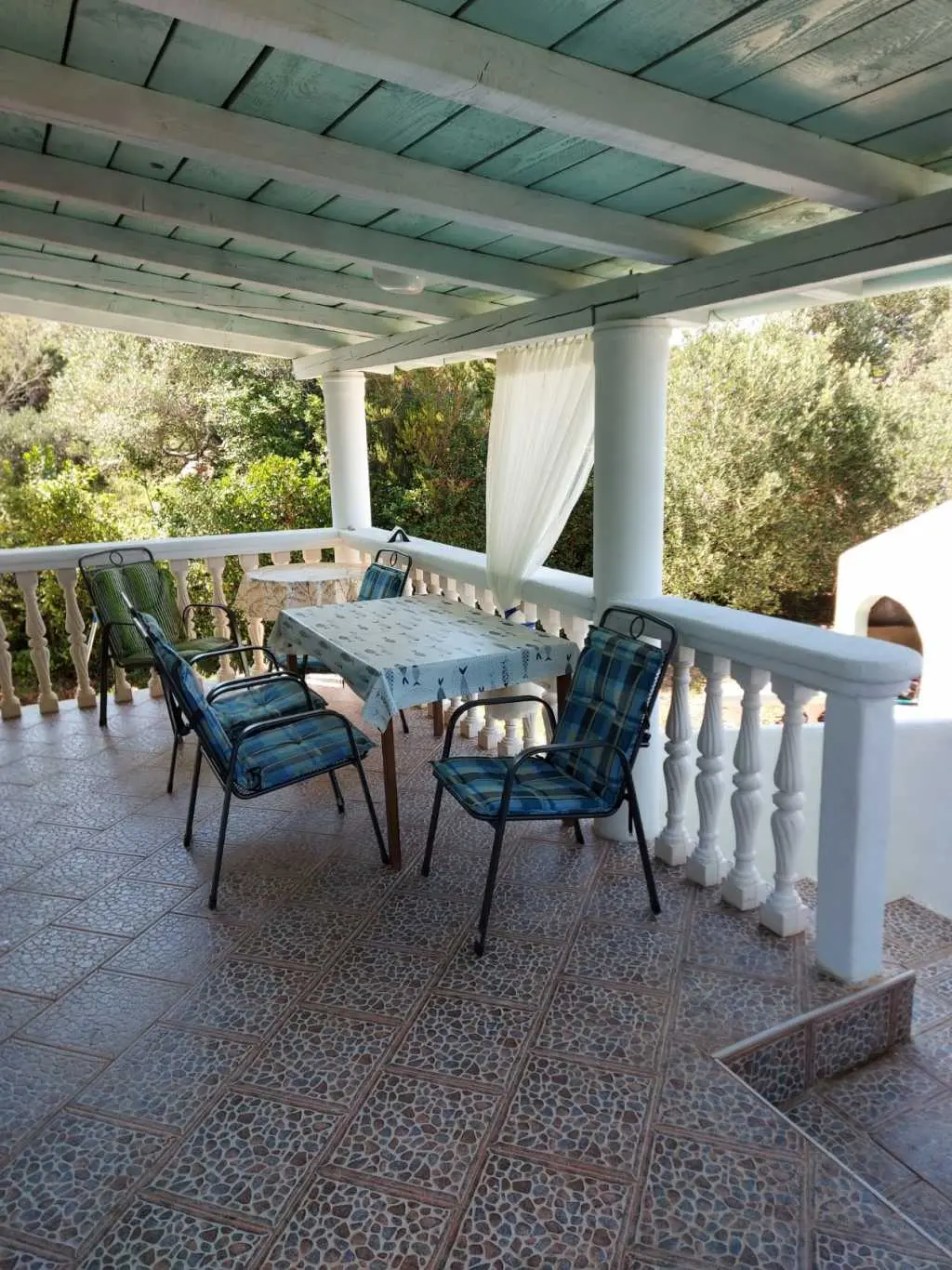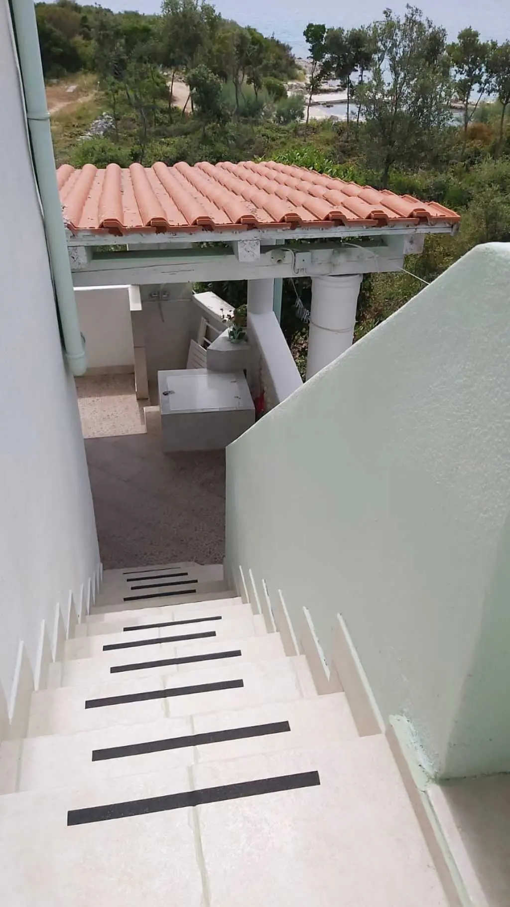 Das Robinsonhaus „Sunset Romance“, GANZ zu vermieten, befindet sich auf der Südseite der Insel Pašman, in einer wunderschönen kleinen Bucht, Stivanja, 50 m vom Meer entfernt, erste Reihe zum Meer, 5 km von der Stadt Neviđane entfernt, auf der Nordseite der Insel, die mit der Fähre Zadar – Preko (20 km mit dem Auto) oder Biograd – Tkon (15 km) erreichbar ist. Es ist von der Staatsstraße D 110, Kreuzung Neviđane, auf einer unbefestigten Straße, die vorsichtigeres Fahren erfordert, direkt zum Parkplatz neben dem Haus zu erreichen oder mit dem Boot, einem kleinen Schnellboot, in der Bucht zu einem vereinbarten Platz. Für Ihr Boot ist eine vorherige Absprache erforderlich, damit in der Bucht Platz ist! Es ist umgeben von Grün und Olivenbäumen auf einem 400 m2 großen Grundstück, erste Reihe zum Meer, das sich bis zu 10 m vom Meer entfernt erstreckt, neben vier kleineren Häusern in 20 m Entfernung, die ebenfalls zu vermieten sind. Das Haus bietet Platz für bis zu 6 (sechs) Personen (2x(2+1)+1), verfügt über ein Erdgeschoss und ein Obergeschoss mit Terrassen und ist nach Süden ausgerichtet mit Blick auf das Meer, den Nationalpark Kornati und die Inseln des Zadar-Archipels. Im Erdgeschoss befinden sich ein großer Grill, eine Terrasse mit Tisch und Stühlen, eine Solar-Außendusche sowie Zugang zur Küche und zum Wohnzimmer. Die Küche ist mit Spüle, eingebautem 4-fach-Gasherd, kombiniertem Kühlschrank, Geschirrspüler, Mikrowelle, Mixer und Wasserkocher ausgestattet. Neben der Küche befindet sich das Wohnzimmer mit Bartheke und Stühlen sowie einem Einzelbett. Vom Wohnzimmer aus gelangt man auf der einen Seite in das Badezimmer mit Dusche, Warmwasser und Toilette und auf der anderen Seite in ein Schlafzimmer (2+1) mit einem Doppelbett und einem Einzelbett sowie einer separaten Toilette! Für kältere Tage ist das Haus mit einem Holzofen ausgestattet. Von der Terrasse führt eine offene Treppe in das Obergeschoss. Wohnzimmer mit Tisch und Stühlen, Eingang zur Küche mit Spüle (Warmwasser) und Kühlschrank, Gasherd (kein Backofen), Badezimmer mit Dusche sowie zum Schlafzimmer (2 + 1) mit einem Doppelbett und einem Einzelbett für eine Person, separate Toilette. Vom Wohnzimmer aus gibt es einen Ausgang zur Terrasse mit kleinem Tisch und Sesseln und Aussicht auf das Meer und die Inseln. Das Wasser im gesamten Haus ist Regenwasser – Trinkwasser, es wird mit einem Tankwagen gebracht. Es wird empfohlen, das Wasser vor der Verwendung zum Trinken abzukochen. Tank 10 m3. Es ist notwendig, sparsam damit umzugehen, da es von einem Tankwagen aufgefüllt wird, der nicht immer sofort verfügbar ist. Der Strom kommt von 6 Solarkollektoren, im ganzen Haus 220 V. Alle Räume sind mit LED-Energiesparlampen beleuchtet. Smart-TV und WLAN! Auf dem eigenen Grundstück, 10 m vom Meer entfernt, sind Liegestühle aufgestellt, um Sonnenuntergänge und eine Pause von der strahlenden Sonne zu genießen. Hinweis: In der Vor- und Nachsaison vom 26. April bis 17. Mai und vom 27.9. bis 2025 ist es möglich, nur das Erdgeschoss für 2 Personen zu mieten, mit bis zu 20 % Rabatt (Haustierpreis bleibt 8 € pro Tag). Wir empfehlen Ihnen, nach Ihrer Ankunft den allgemeinen Zustand des Hauses zu überprüfen, um Unannehmlichkeiten zu vermeiden. Spätere Reklamationen werden nicht akzeptiert! Wir bitten Sie, eventuelle Schäden rechtzeitig zu melden, damit diese rechtzeitig behoben werden können. Die Endreinigung ist obligatorisch und kostenlos. Ihre Gastgeber wünschen Ihnen einen schönen Urlaub!