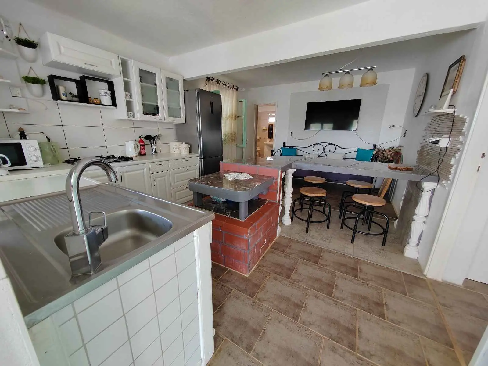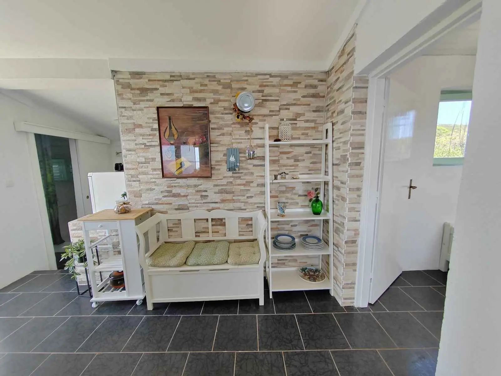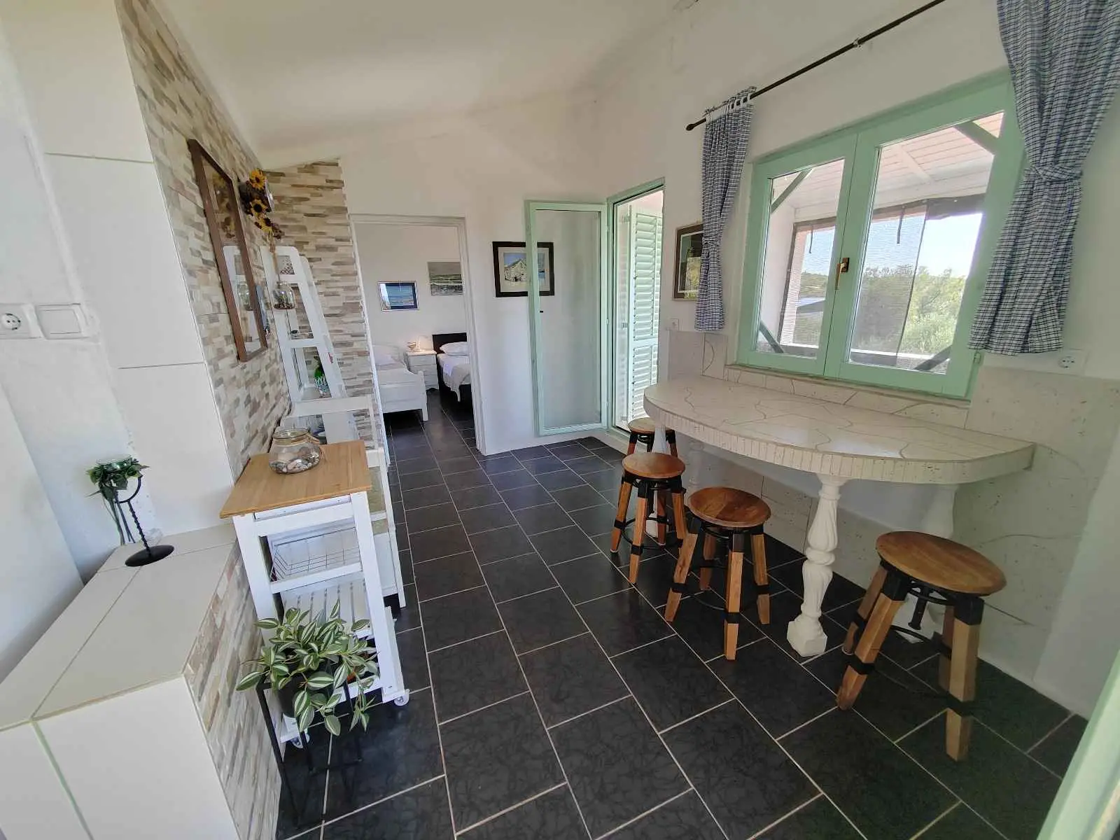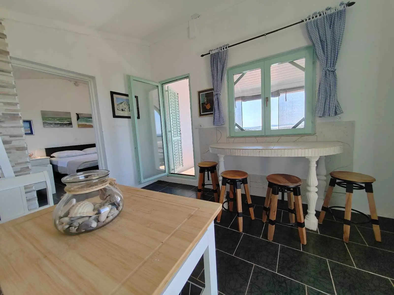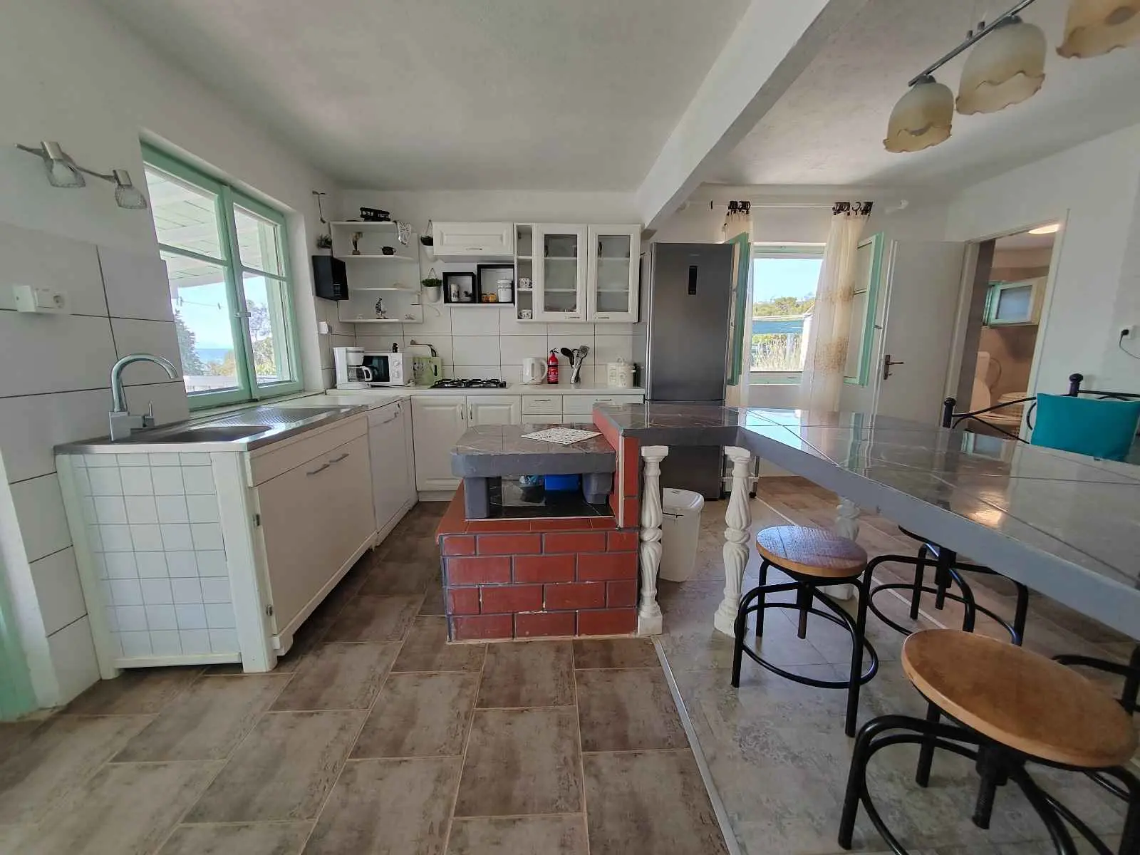 Das Robinsonhaus „Sunset Romance“, GANZ zu vermieten, befindet sich auf der Südseite der Insel Pašman, in einer wunderschönen kleinen Bucht, Stivanja, 50 m vom Meer entfernt, erste Reihe zum Meer, 5 km von der Stadt Neviđane entfernt, auf der Nordseite der Insel, die mit der Fähre Zadar – Preko (20 km mit dem Auto) oder Biograd – Tkon (15 km) erreichbar ist. Es ist von der Staatsstraße D 110, Kreuzung Neviđane, auf einer unbefestigten Straße, die vorsichtigeres Fahren erfordert, direkt zum Parkplatz neben dem Haus zu erreichen oder mit dem Boot, einem kleinen Schnellboot, in der Bucht zu einem vereinbarten Platz. Für Ihr Boot ist eine vorherige Absprache erforderlich, damit in der Bucht Platz ist! Es ist umgeben von Grün und Olivenbäumen auf einem 400 m2 großen Grundstück, erste Reihe zum Meer, das sich bis zu 10 m vom Meer entfernt erstreckt, neben vier kleineren Häusern in 20 m Entfernung, die ebenfalls zu vermieten sind. Das Haus bietet Platz für bis zu 6 (sechs) Personen (2x(2+1)+1), verfügt über ein Erdgeschoss und ein Obergeschoss mit Terrassen und ist nach Süden ausgerichtet mit Blick auf das Meer, den Nationalpark Kornati und die Inseln des Zadar-Archipels. Im Erdgeschoss befinden sich ein großer Grill, eine Terrasse mit Tisch und Stühlen, eine Solar-Außendusche sowie Zugang zur Küche und zum Wohnzimmer. Die Küche ist mit Spüle, eingebautem 4-fach-Gasherd, kombiniertem Kühlschrank, Geschirrspüler, Mikrowelle, Mixer und Wasserkocher ausgestattet. Neben der Küche befindet sich das Wohnzimmer mit Bartheke und Stühlen sowie einem Einzelbett. Vom Wohnzimmer aus gelangt man auf der einen Seite in das Badezimmer mit Dusche, Warmwasser und Toilette und auf der anderen Seite in ein Schlafzimmer (2+1) mit einem Doppelbett und einem Einzelbett sowie einer separaten Toilette! Für kältere Tage ist das Haus mit einem Holzofen ausgestattet. Von der Terrasse führt eine offene Treppe in das Obergeschoss. Wohnzimmer mit Tisch und Stühlen, Eingang zur Küche mit Spüle (Warmwasser) und Kühlschrank, Gasherd (kein Backofen), Badezimmer mit Dusche sowie zum Schlafzimmer (2 + 1) mit einem Doppelbett und einem Einzelbett für eine Person, separate Toilette. Vom Wohnzimmer aus gibt es einen Ausgang zur Terrasse mit kleinem Tisch und Sesseln und Aussicht auf das Meer und die Inseln. Das Wasser im gesamten Haus ist Regenwasser – Trinkwasser, es wird mit einem Tankwagen gebracht. Es wird empfohlen, das Wasser vor der Verwendung zum Trinken abzukochen. Tank 10 m3. Es ist notwendig, sparsam damit umzugehen, da es von einem Tankwagen aufgefüllt wird, der nicht immer sofort verfügbar ist. Der Strom kommt von 6 Solarkollektoren, im ganzen Haus 220 V. Alle Räume sind mit LED-Energiesparlampen beleuchtet. Smart-TV und WLAN! Auf dem eigenen Grundstück, 10 m vom Meer entfernt, sind Liegestühle aufgestellt, um Sonnenuntergänge und eine Pause von der strahlenden Sonne zu genießen. Hinweis: In der Vor- und Nachsaison vom 26. April bis 17. Mai und vom 27.9. bis 2025 ist es möglich, nur das Erdgeschoss für 2 Personen zu mieten, mit bis zu 20 % Rabatt (Haustierpreis bleibt 8 € pro Tag). Wir empfehlen Ihnen, nach Ihrer Ankunft den allgemeinen Zustand des Hauses zu überprüfen, um Unannehmlichkeiten zu vermeiden. Spätere Reklamationen werden nicht akzeptiert! Wir bitten Sie, eventuelle Schäden rechtzeitig zu melden, damit diese rechtzeitig behoben werden können. Die Endreinigung ist obligatorisch und kostenlos. Ihre Gastgeber wünschen Ihnen einen schönen Urlaub!